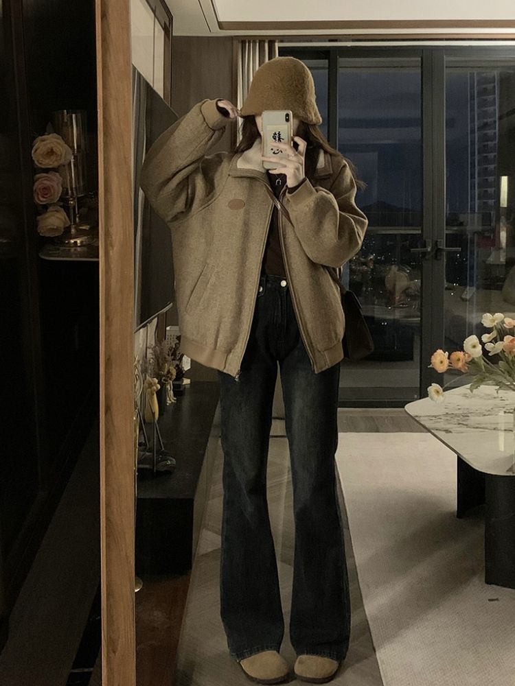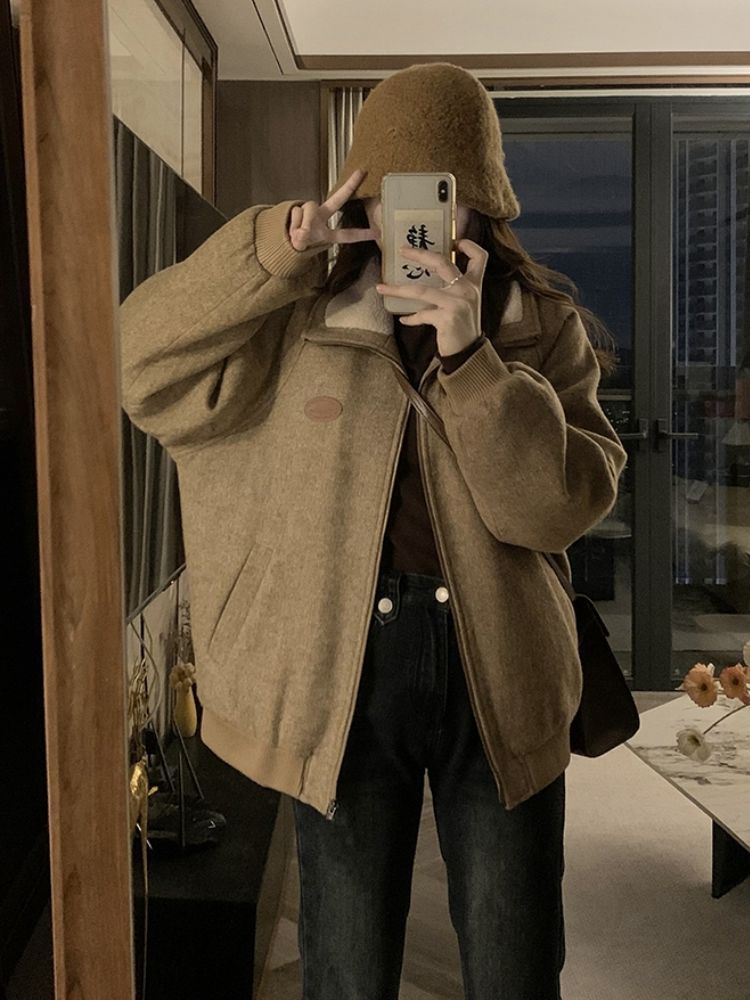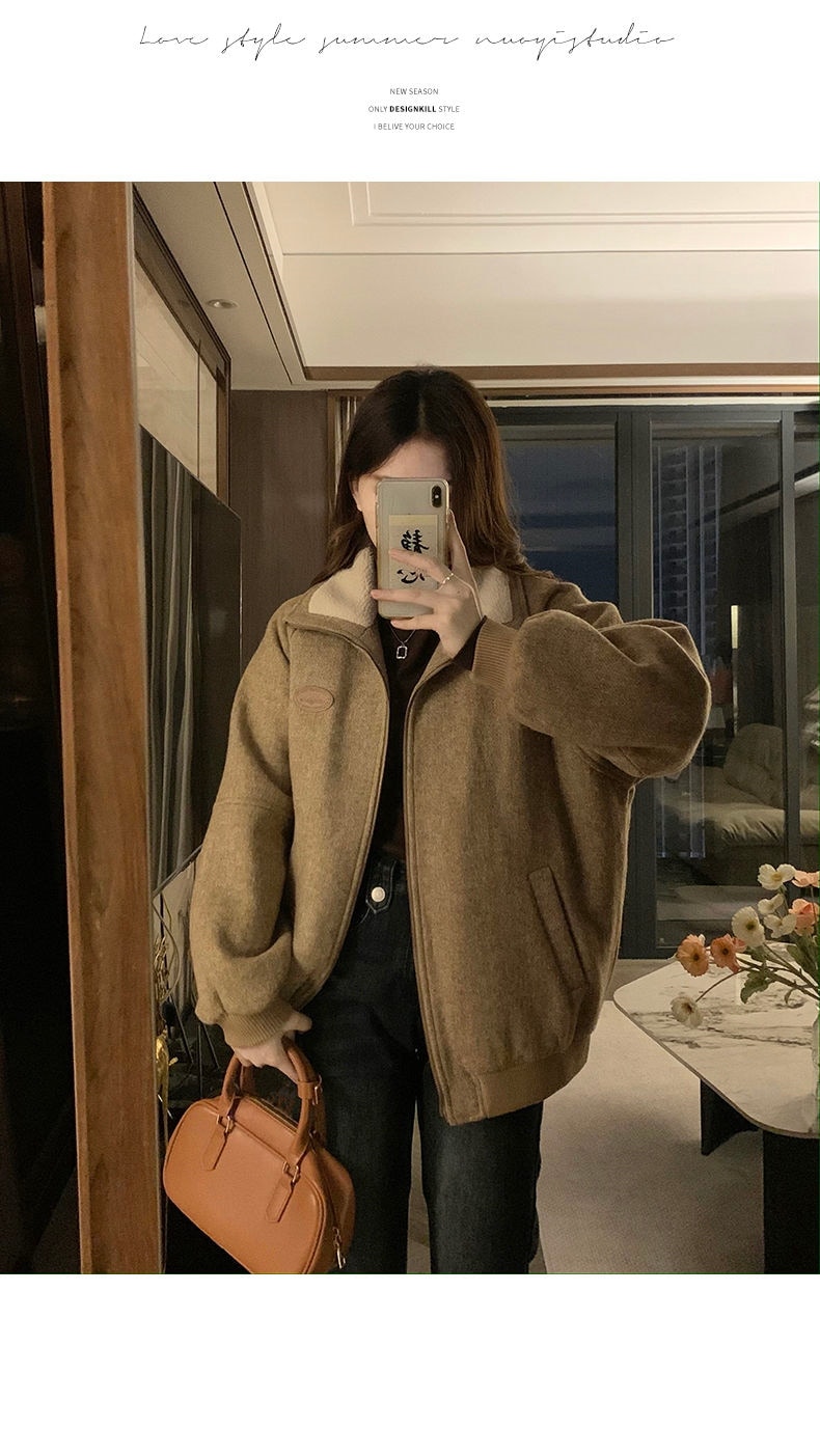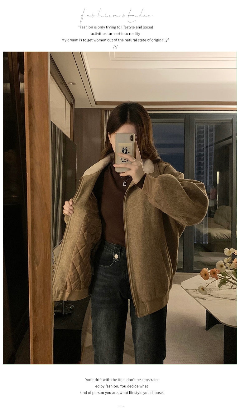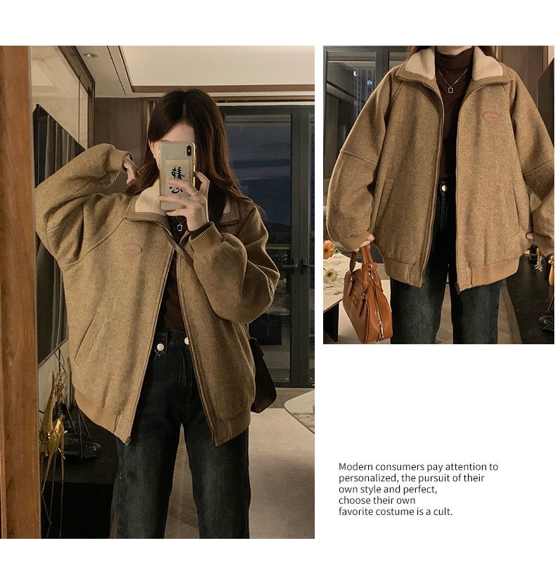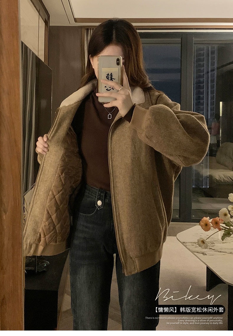 ジャンパー ブルゾン フェイクファーコート女秋冬高級感小柄ジャケット綿厚手開襟ジャケット野球着トップス ジャンパー ブルゾン