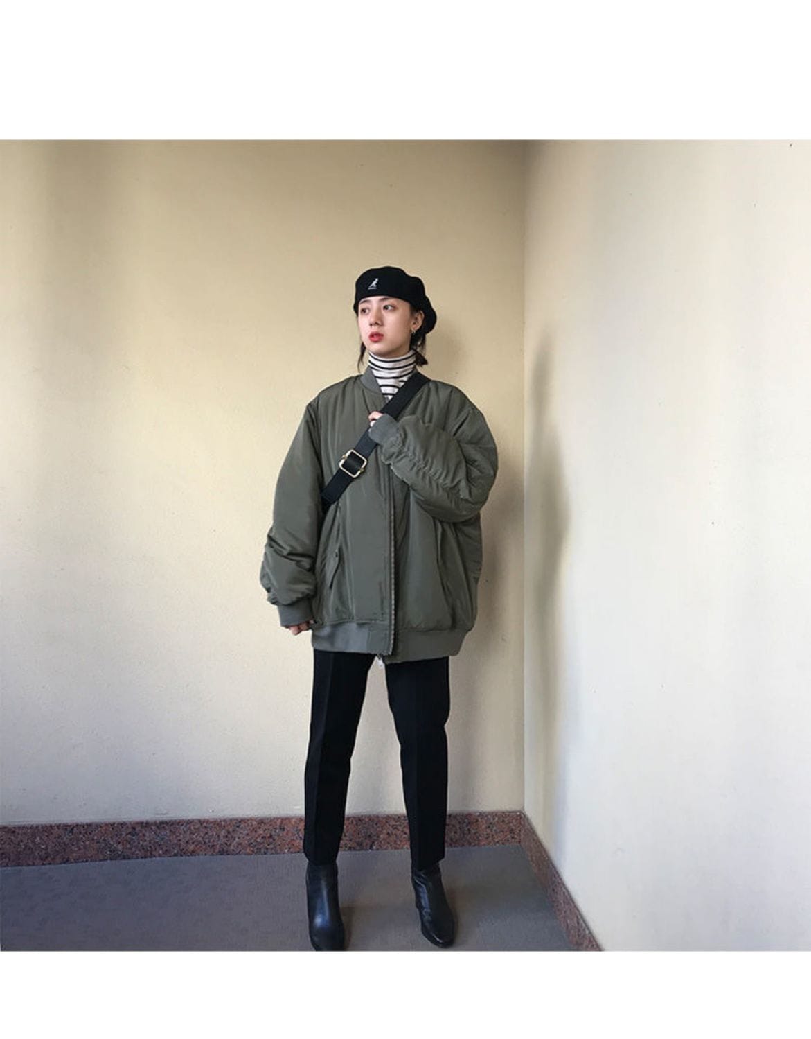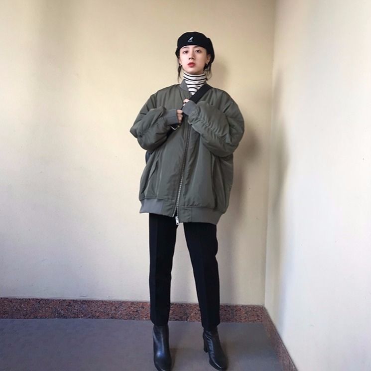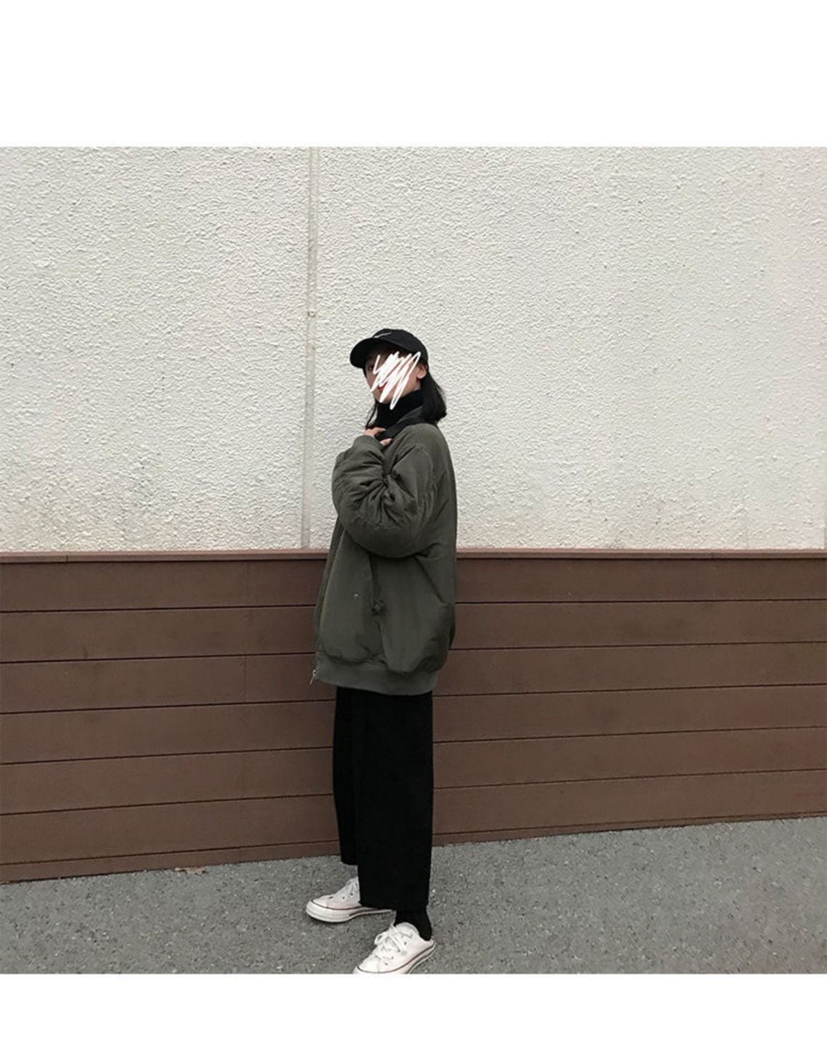 ジャンパー ブルゾン 韓国版秋冬新型純色ジッパー棒ジャージコート学生中長期長袖短綿服女性 ジャンパー ブルゾン