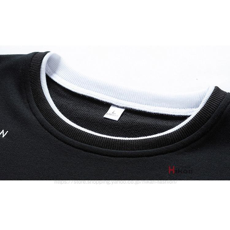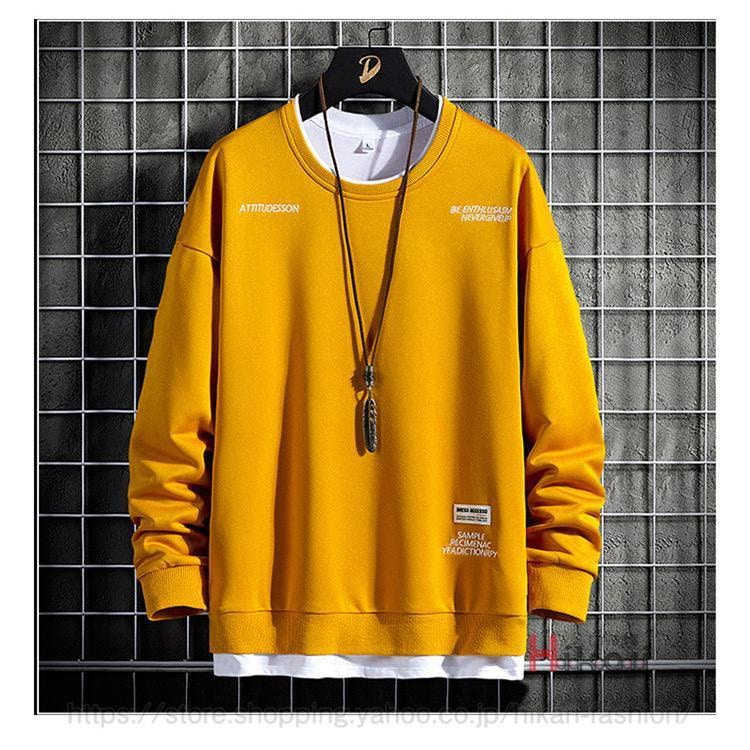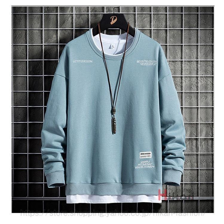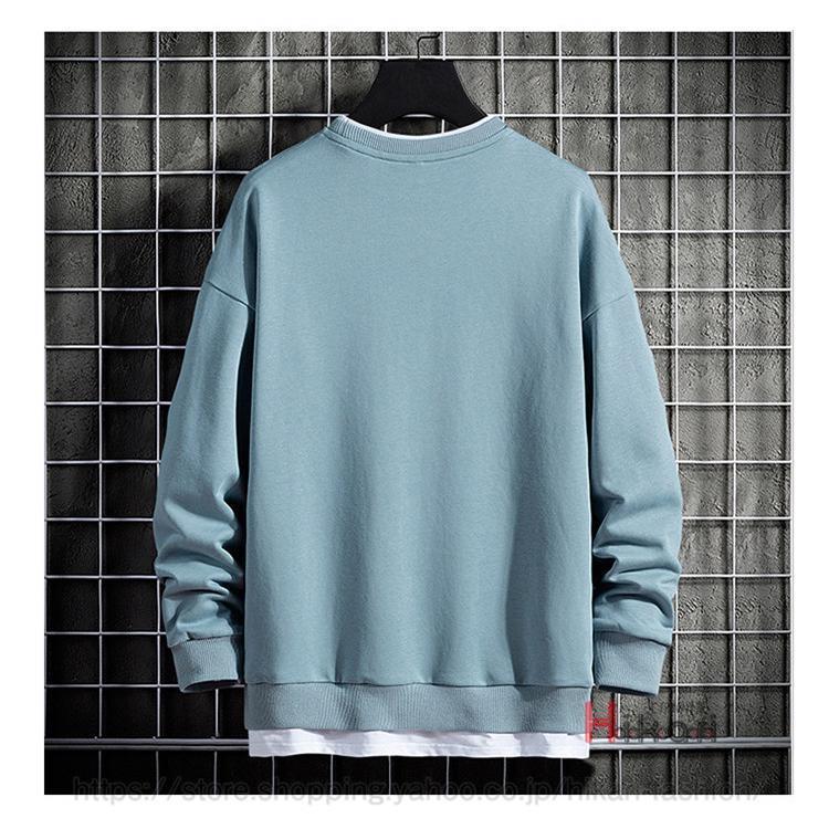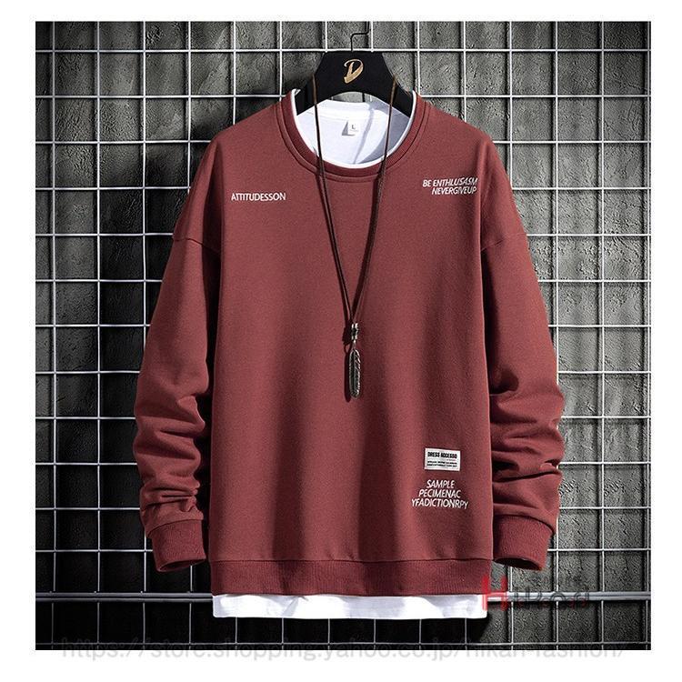 トレーナー メンズ プルオーバー メンズ春物 切り替え 重ね着風 スウェット 長袖 クルーネック メンズトレーナー 父の日 プレゼント Tシャツ