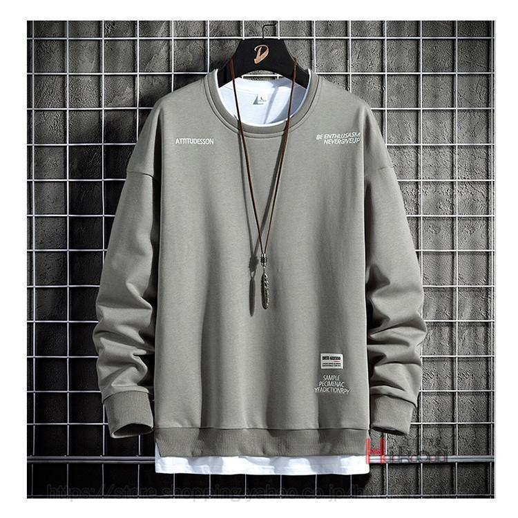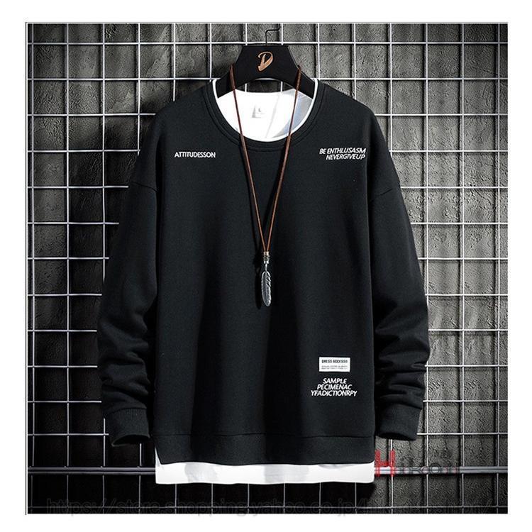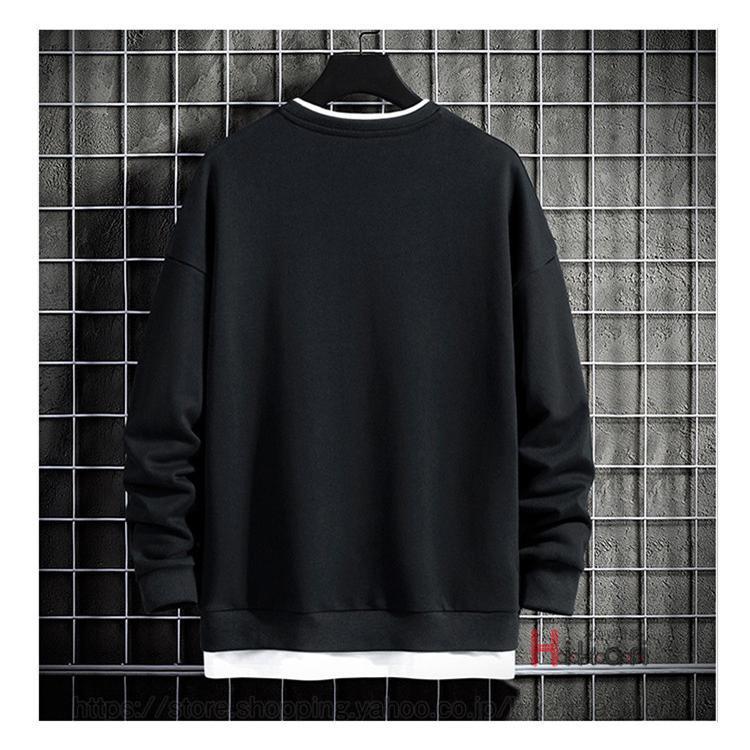 トレーナー メンズ プルオーバー メンズ春物 切り替え 重ね着風 スウェット 長袖 クルーネック メンズトレーナー 父の日 プレゼント Tシャツ