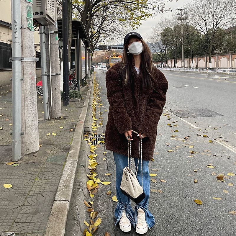 冬アウター ラムファーコートレディースミドル丈秋冬新作韓国ファッショントップス ジャケットジャンパー ブルゾン ジャンパー ブルゾン