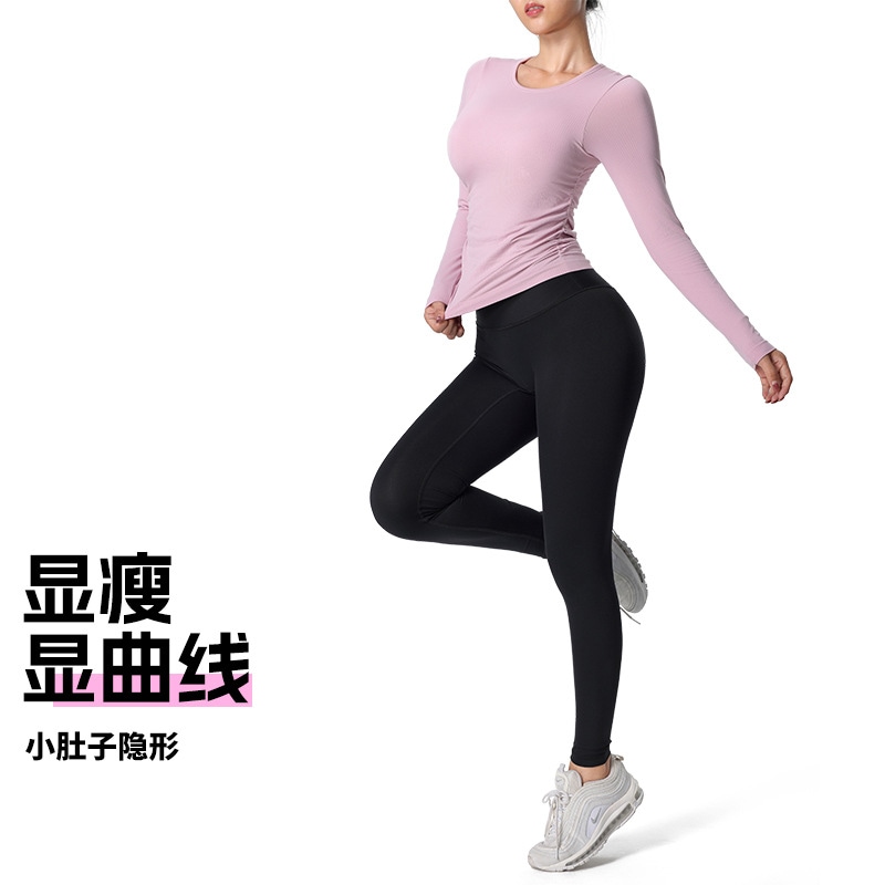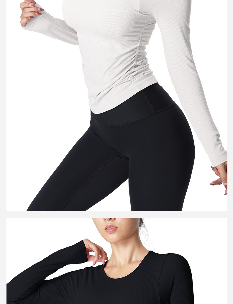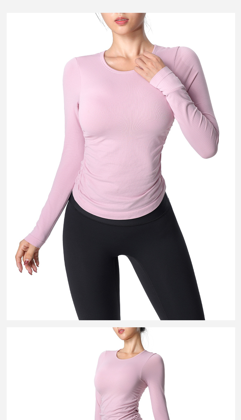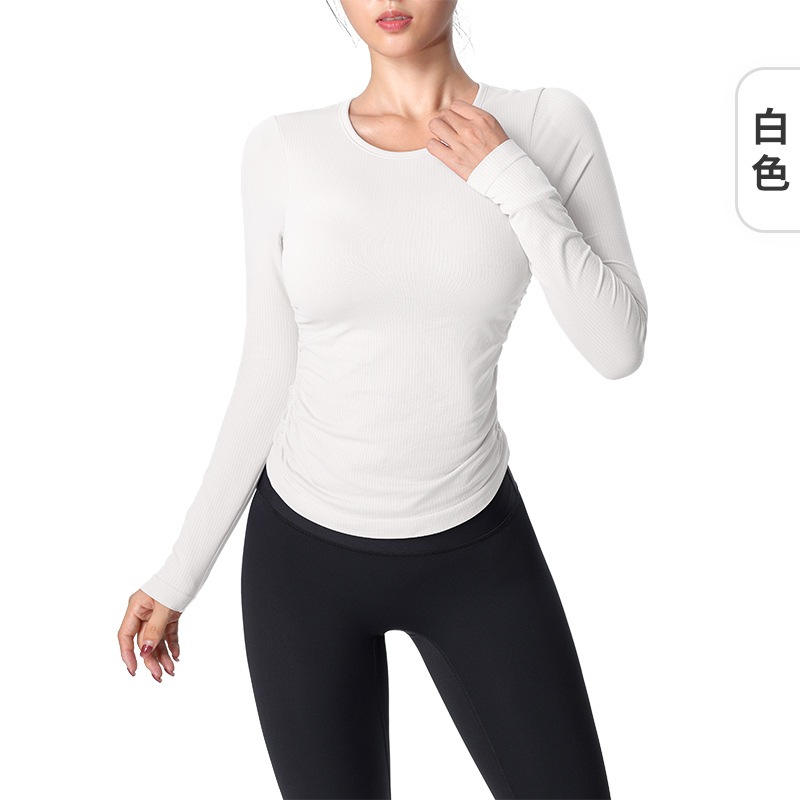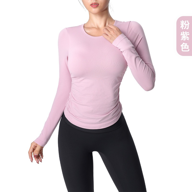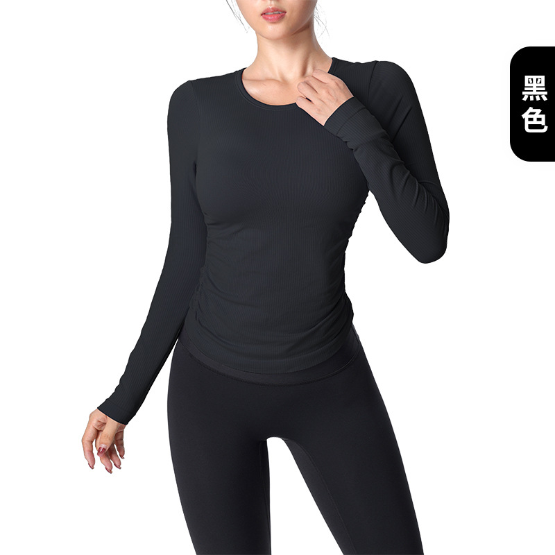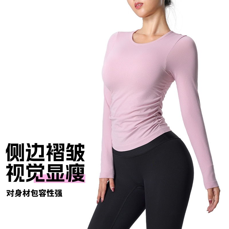 おしゃれヨガウェア 秋冬ヨガウェア長袖サイドプリーツ胸当て付きジャージフィットネスウェア トップス レディース 美背 かわいい タンクトップ 速乾 スポーツTシャツ