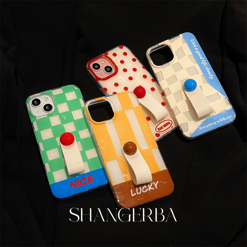 カラー: 赤い水玉模様のシェル + 赤いビーズの手首の全画面 イエローチェック柄LUKYシェル+ブラウンビーズ手首 青と緑のチェック柄の素敵なシェル + 赤いビーズの手 青と白のチェック柄のシェル + ブルーのビーズの手首