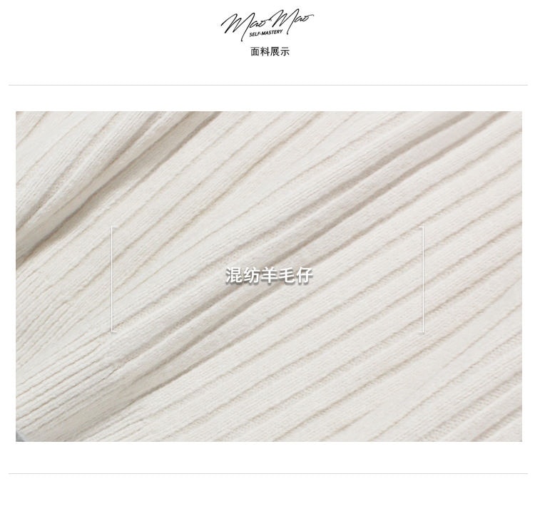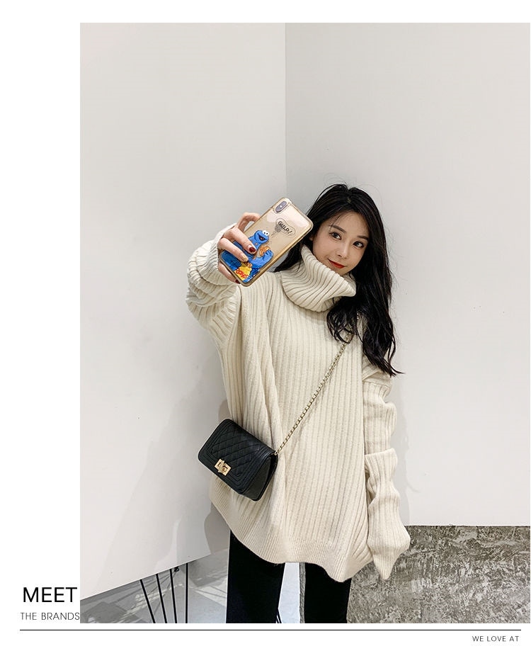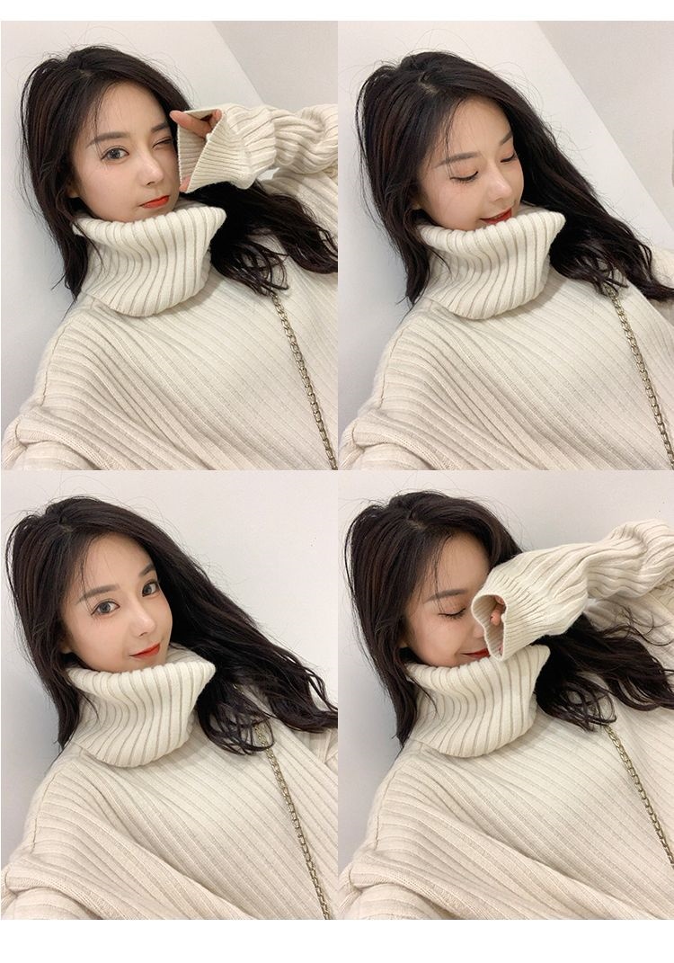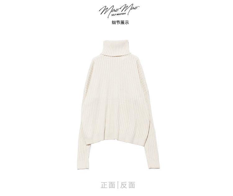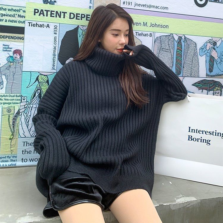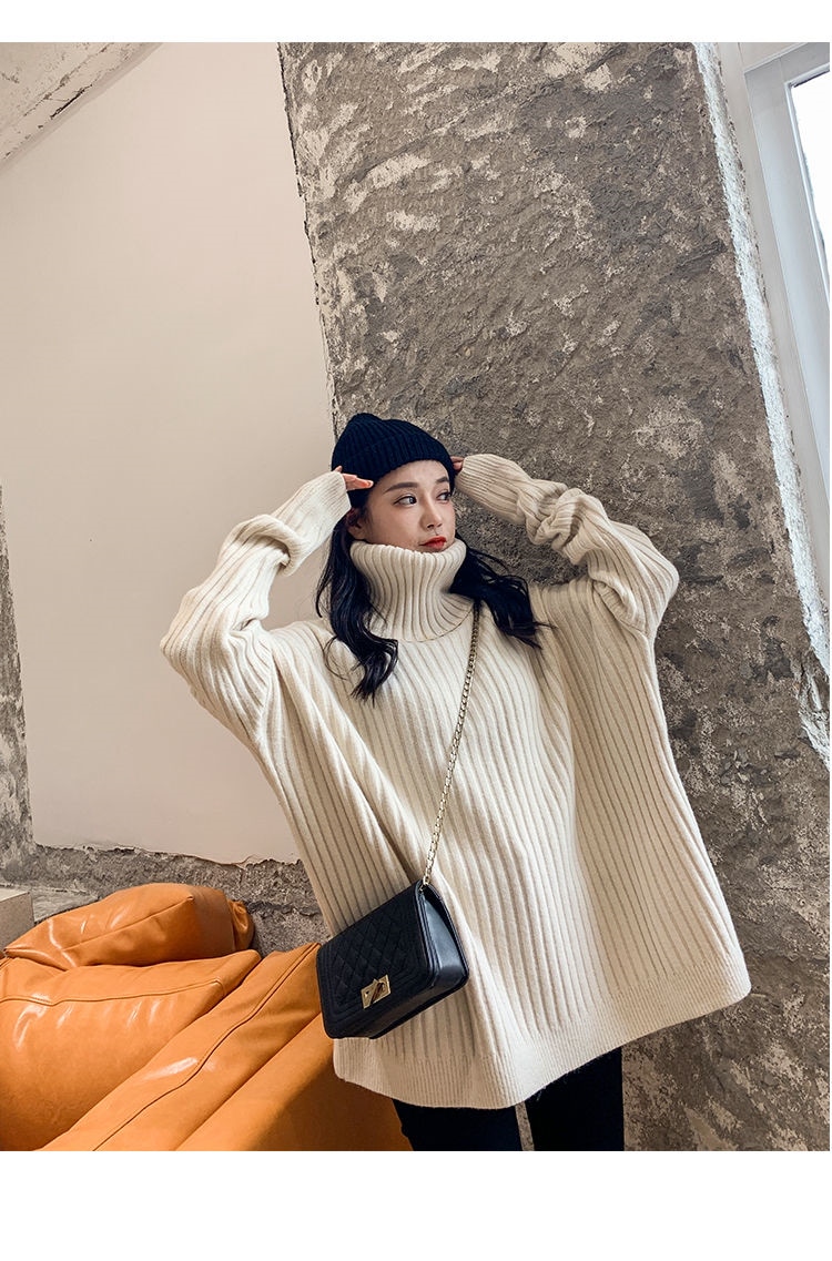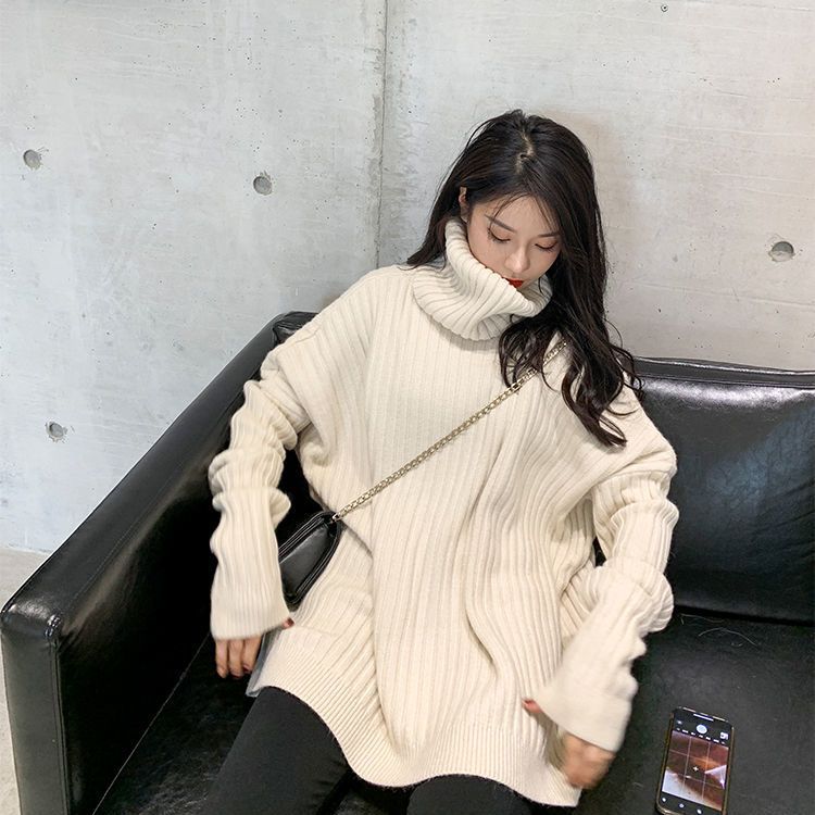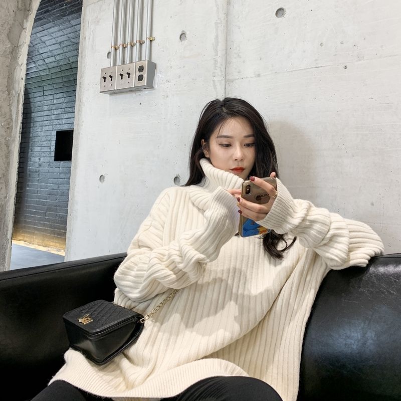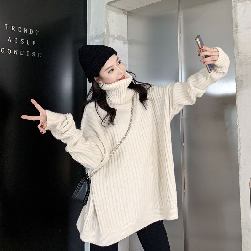 ブラウスハイネックセーターレディースミディアム丈厚手ゆったり外着秋冬新作けだるい風洋風白ボトムニットラブリータートルネックラウンドネックニットあったか カシミヤタッチロンT ベーシックニット