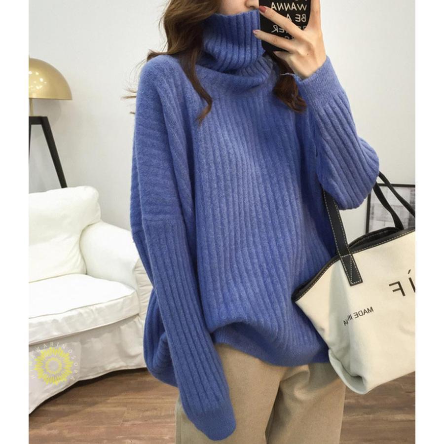 人気なリブニット ニットセーター リブニット プルオーバー 秋冬 レディース ニット チュニック 長袖 トップス ハイネック ニットソー ゆったり 大きいサイズ