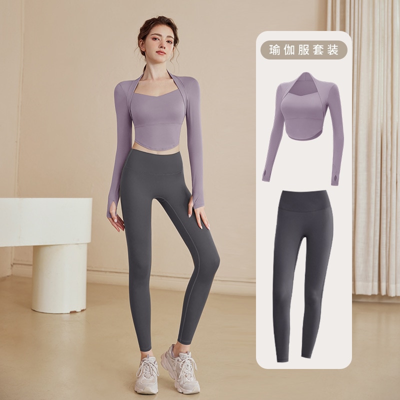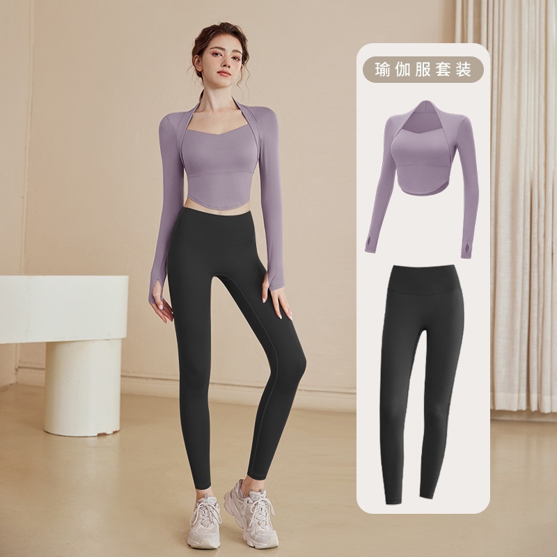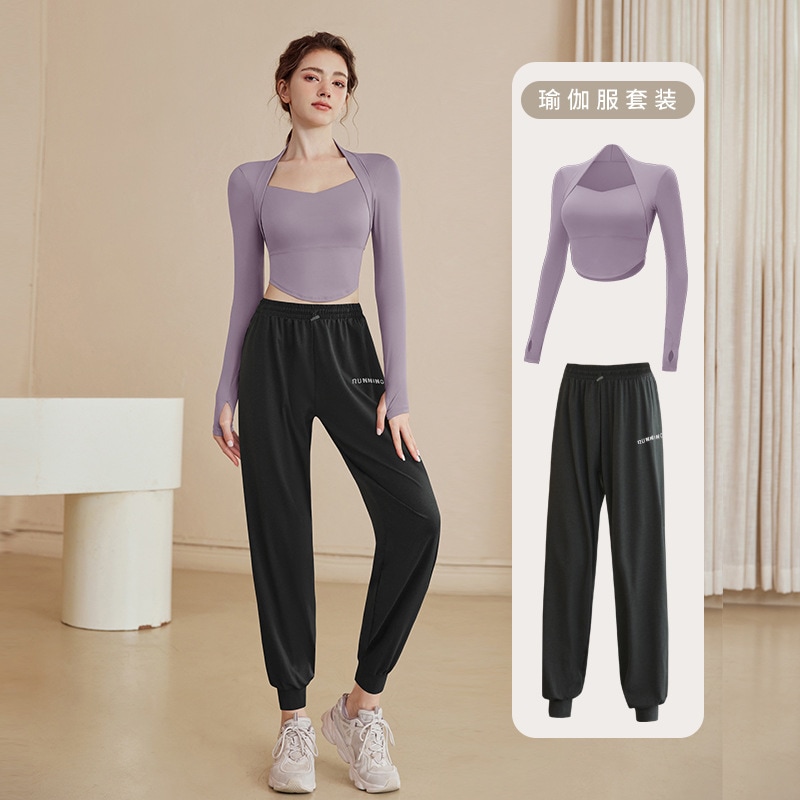 カラー: パープルトップ [メイン画像] [固定カップと胸パッド] ダークコーヒートップ[ラウンドネックスタイル][固定 カーキトップ[ラウンドネックスタイル][固定カップパ パープルトップ [固定カップ胸パッド] + グレーとパー パープルトップ[固定カップブラパッド]+グレーヨガパ パープルトップ[固定カップブラパッド]+黒ヨガパンツ パープルトップ[固定カップパッド]+グレースウェット パープルトップ[固定カップパッド]+黒スウェットパン