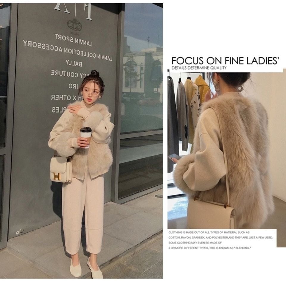 冬アウター 季節の変わり目に大 春まで使えるボリュームエコファーベスト 韓国 ジャケット レディース ファー 毛皮アウター