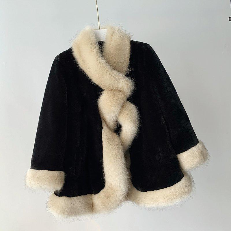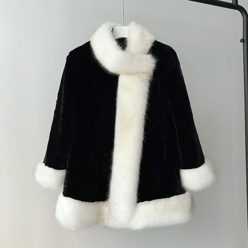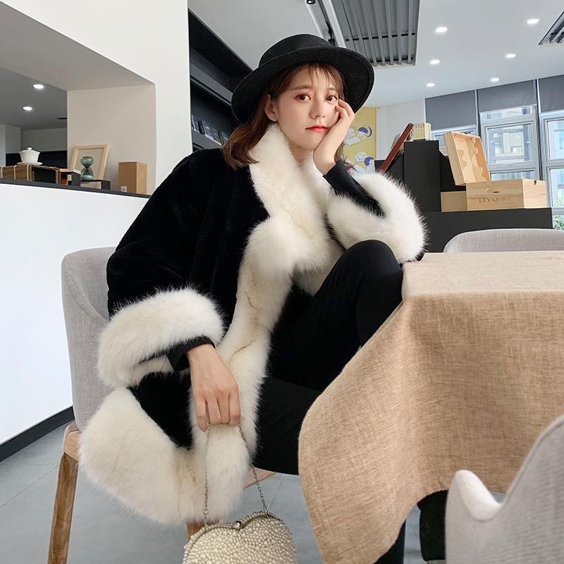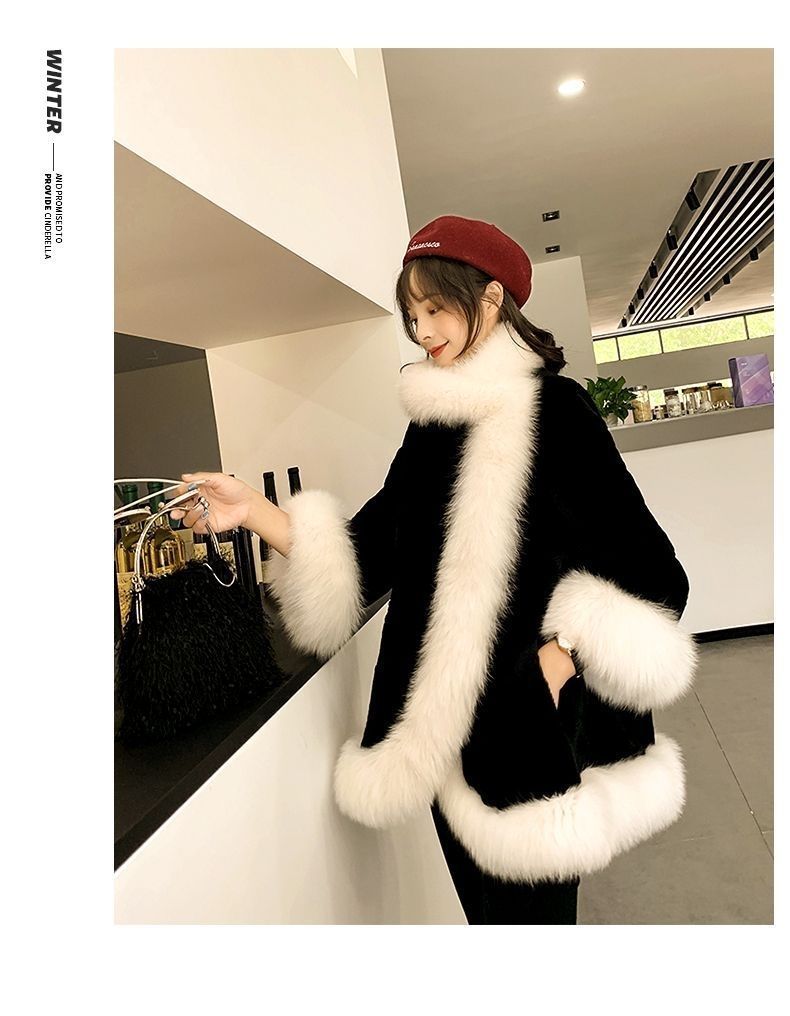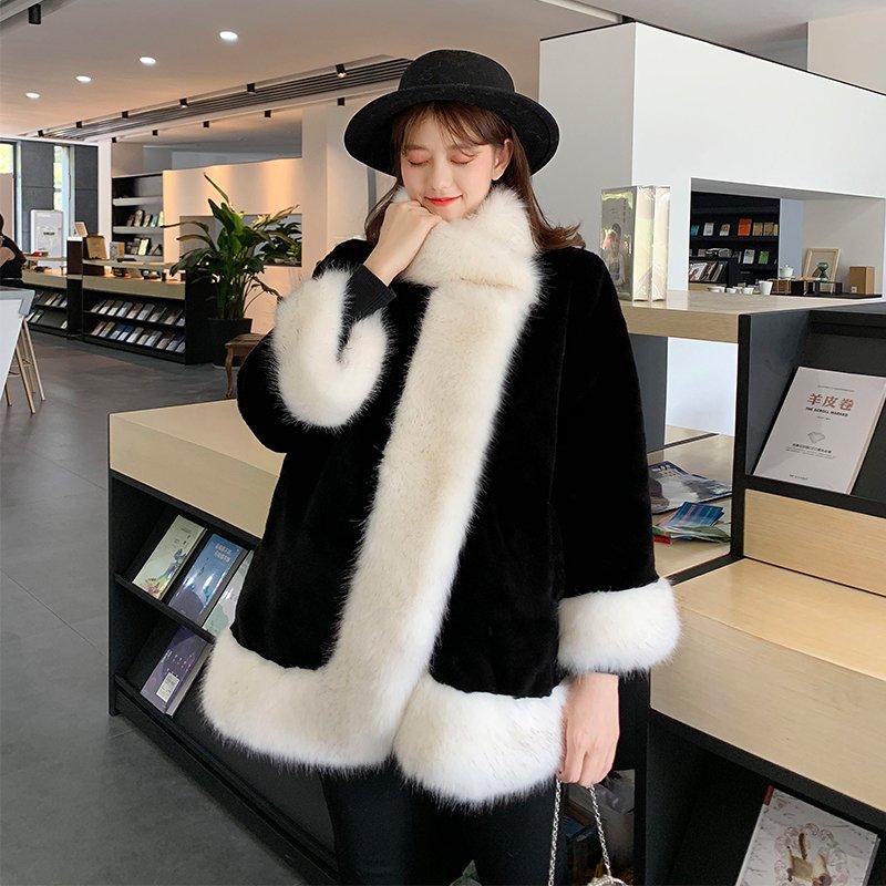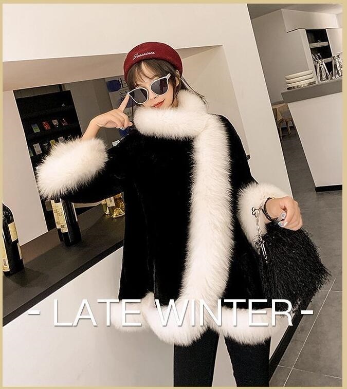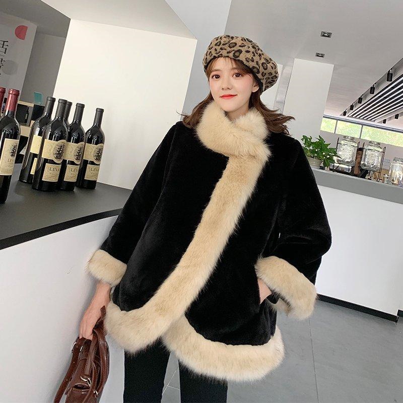 レディースファッション ファーコート イミテーションキツネ 毛皮厚手 暖かい毛皮 マントマントマントウサギ 毛皮のコート 暖かいジャケット ファー 毛皮アウター