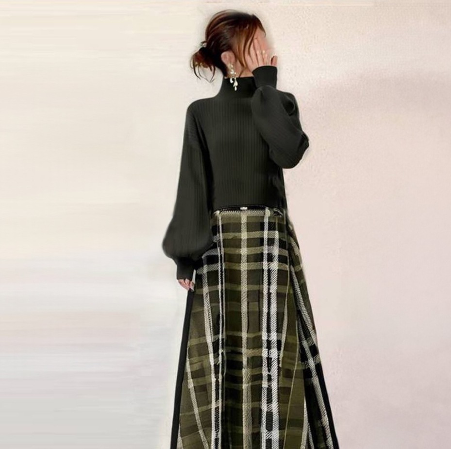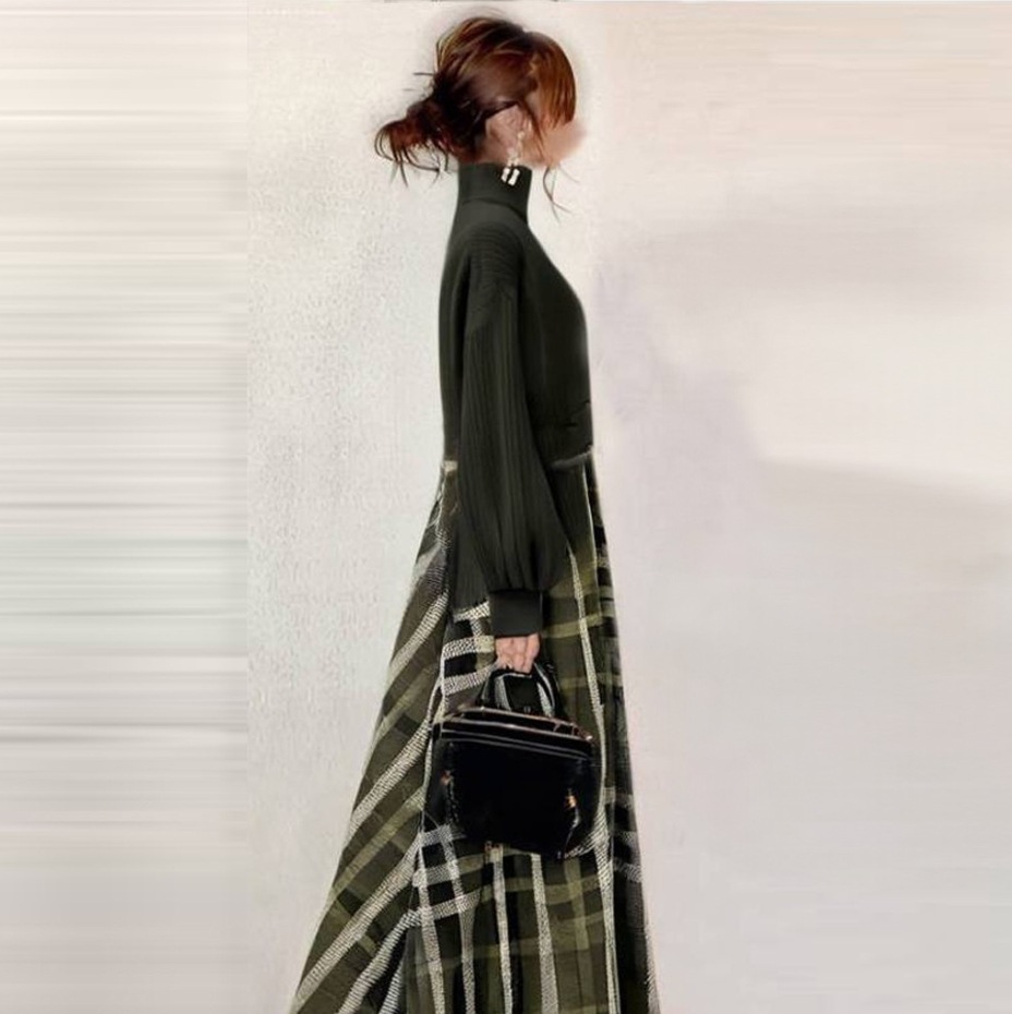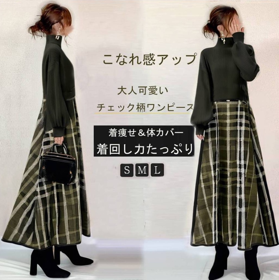 2025初春 日系 大きめサイズ セーター 切り替え ニットワンピース 長袖 春 ロングワンピース レディースファッション メガ割商品