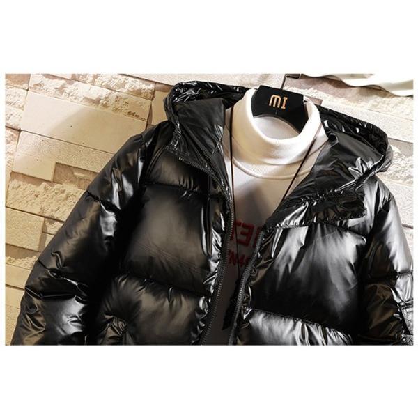 中綿コート ジャケット メンズ 中綿ダウンジャケット アウター ブルゾン エナメル おしゃれ 防寒 冬 フード付き 大きい 暖かい その他