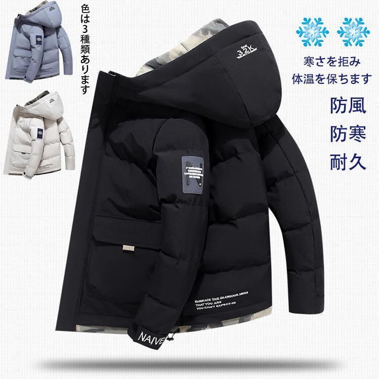 ダウンジャケット メンズ フード付き 軽量 ショート丈 防風 暖かい 中綿コート 防寒着 冬 ビジネス 軽い 寒さ対策 あったか アウトドア アウター