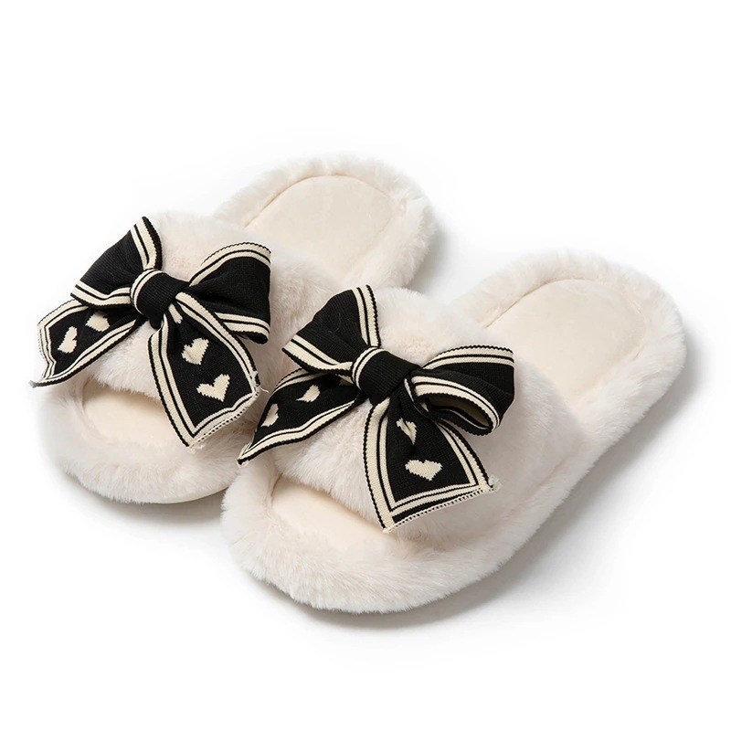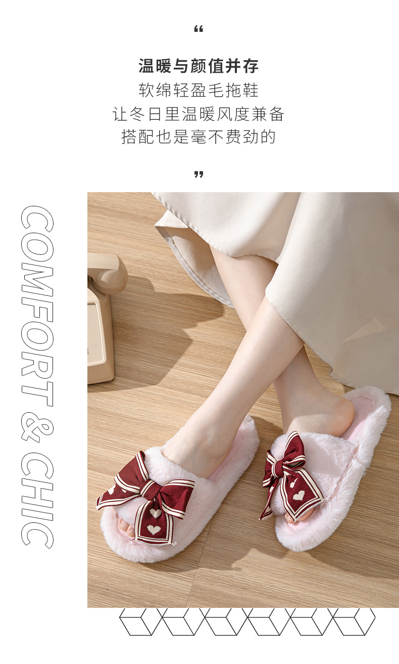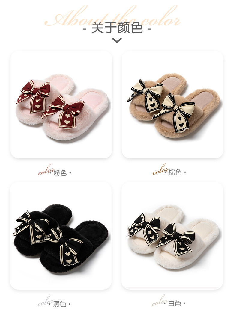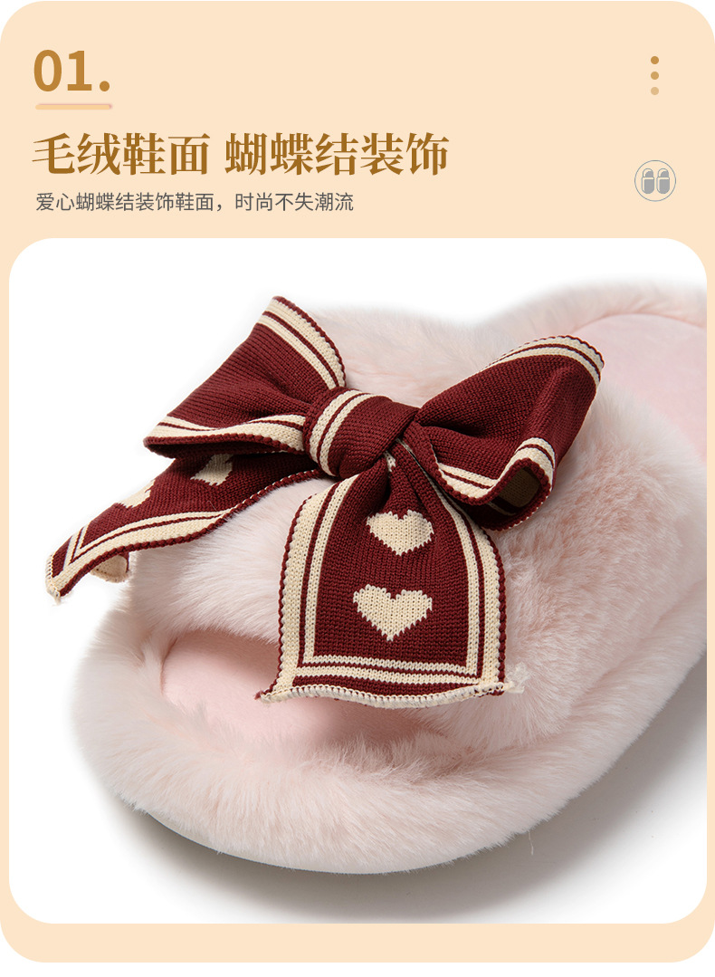 ふわふわ 快適 秋冬ルームシューズ もこもこ 暖かい メガ割 愛の蝶ネクタイ開口綿スリッパ庭用ウールスリッパ女性保温ウールスリッパ女性 スリッパ ルームシューズ