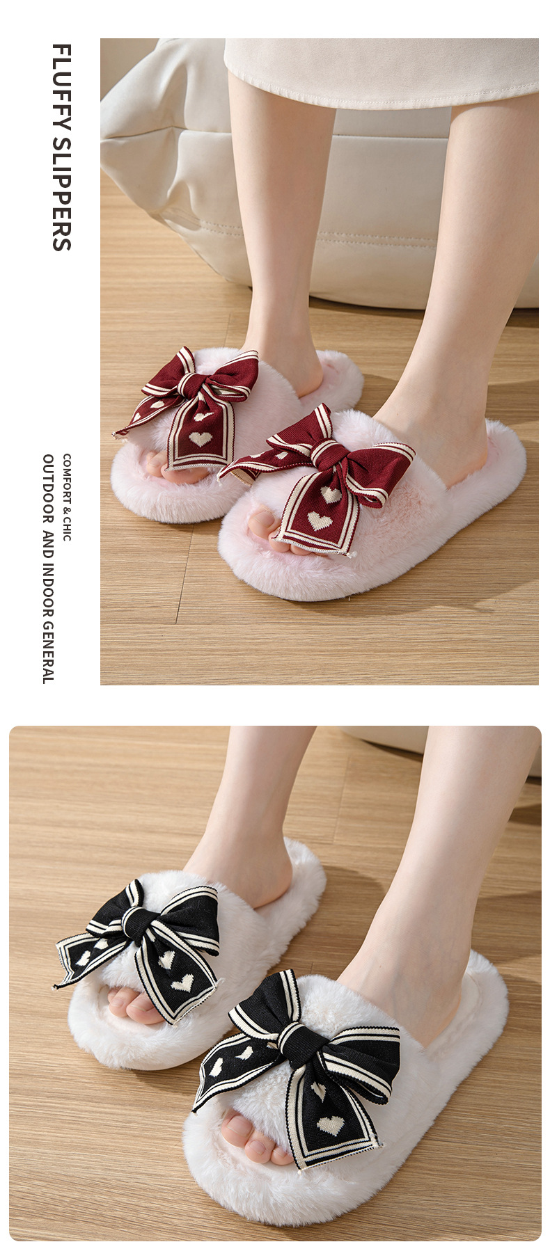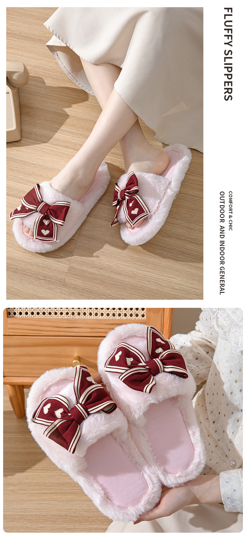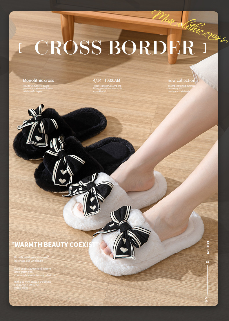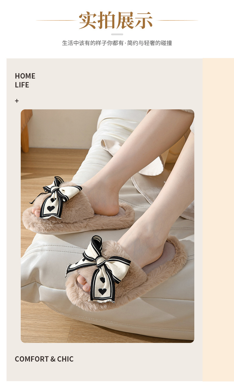 ふわふわ 快適 秋冬ルームシューズ もこもこ 暖かい メガ割 愛の蝶ネクタイ開口綿スリッパ庭用ウールスリッパ女性保温ウールスリッパ女性 スリッパ ルームシューズ