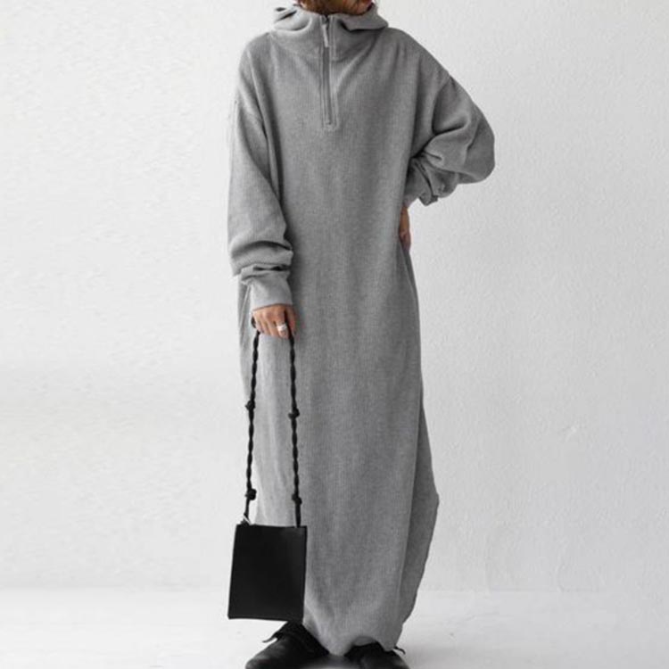トレーナー ワンピ ハーフジップスウェットワンピース ロングワンピース マキシワンピース パーカーワンピース スウェット スウェットワンピース 防寒 暖かい スウェット ハーフジップ