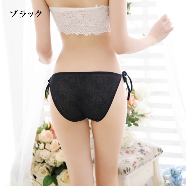 EGOKILLZ リボン 総レース フラワー ショーツ 紐パン 単品 ショーツ レース リボン セクシー 可愛い レディース ランジェリー パンティ 透け 女性 下着