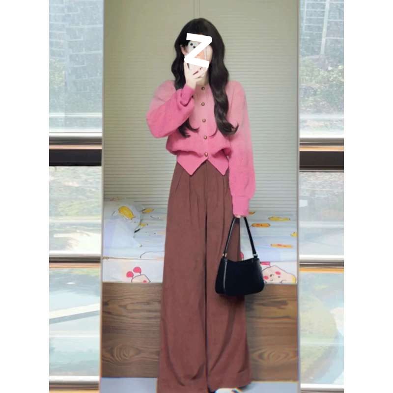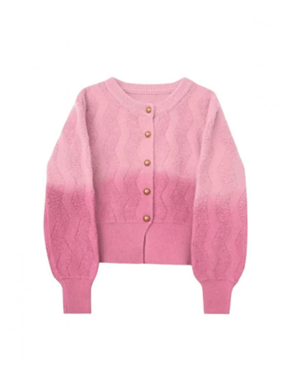 人気なリブニット フレンチグラデーションピンクジャンパーカーディガン女性2025新しい怠惰な風ニットトップス ニット