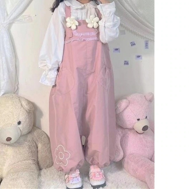 日本のかわいい花のバックパンツ女子学生韓国緩い春と秋2024新しいワンピース提灯ワイドパンツ その他 パンツ