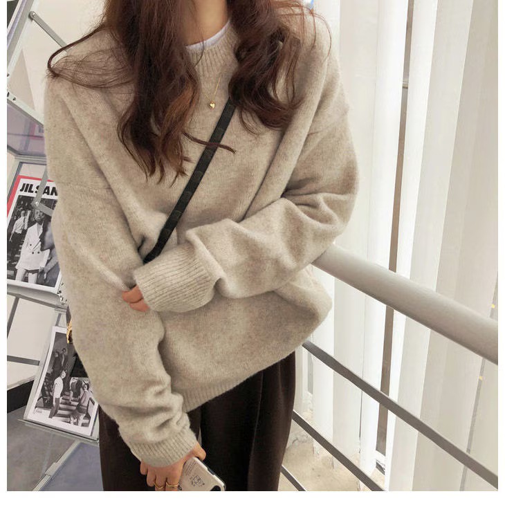 韓国人気商品 厚手 ニット服 セーター 女性 冬アウター ルーズ セーター 大サイズ カシミヤタッチ 無地 厚手シャツ 秋冬 韓国ファッション レディース ファッション