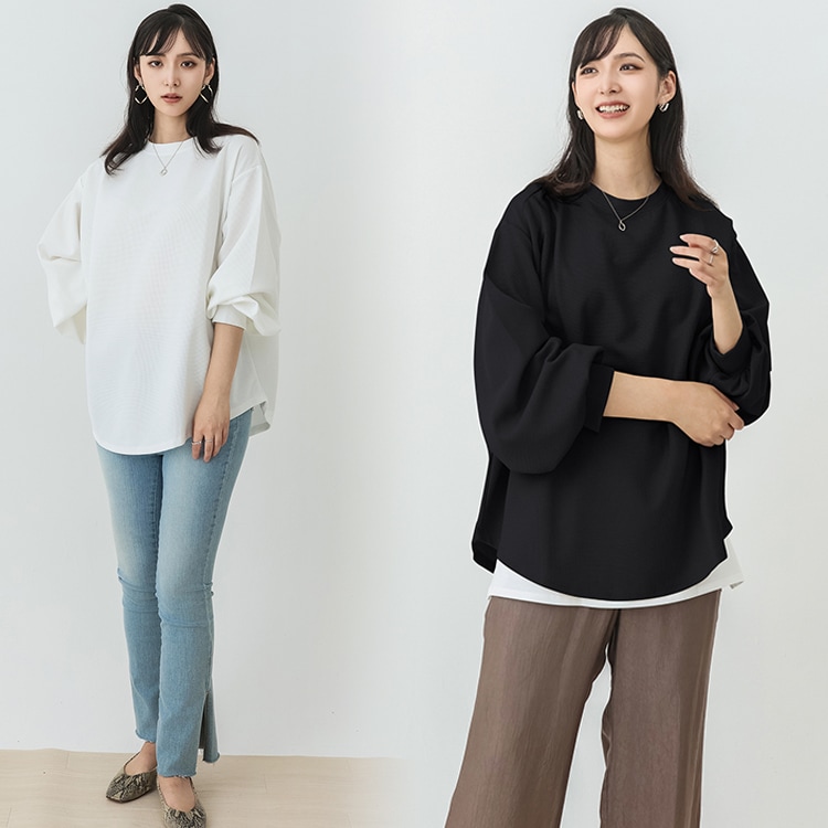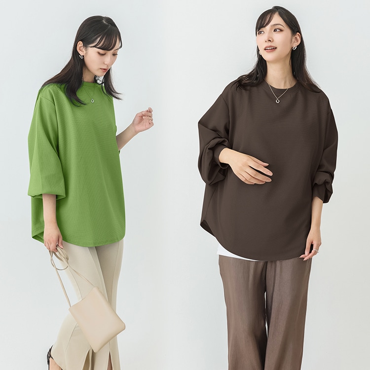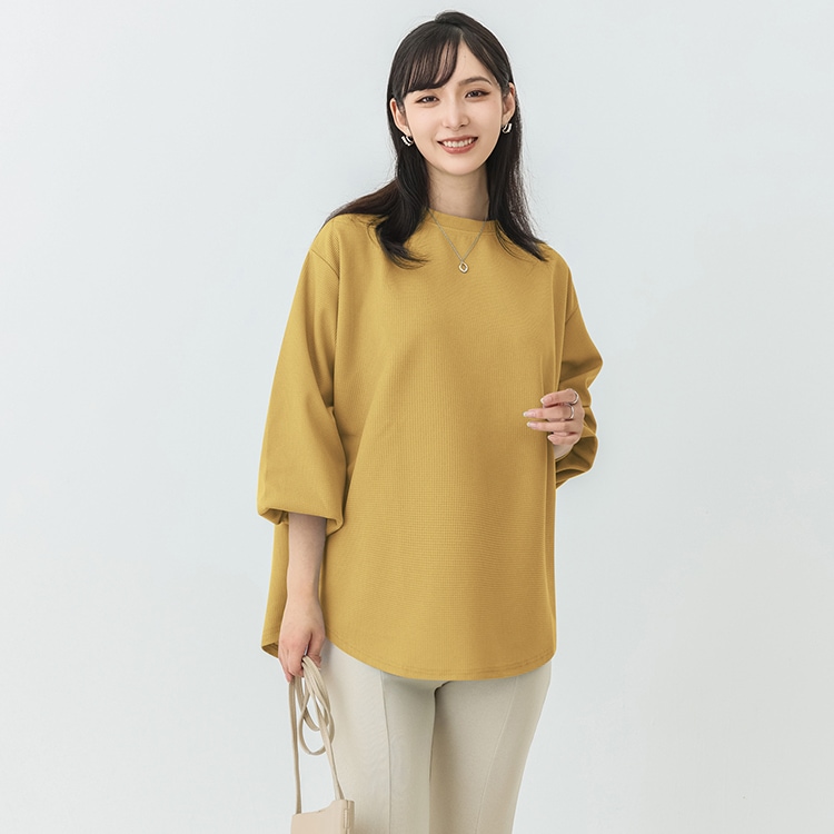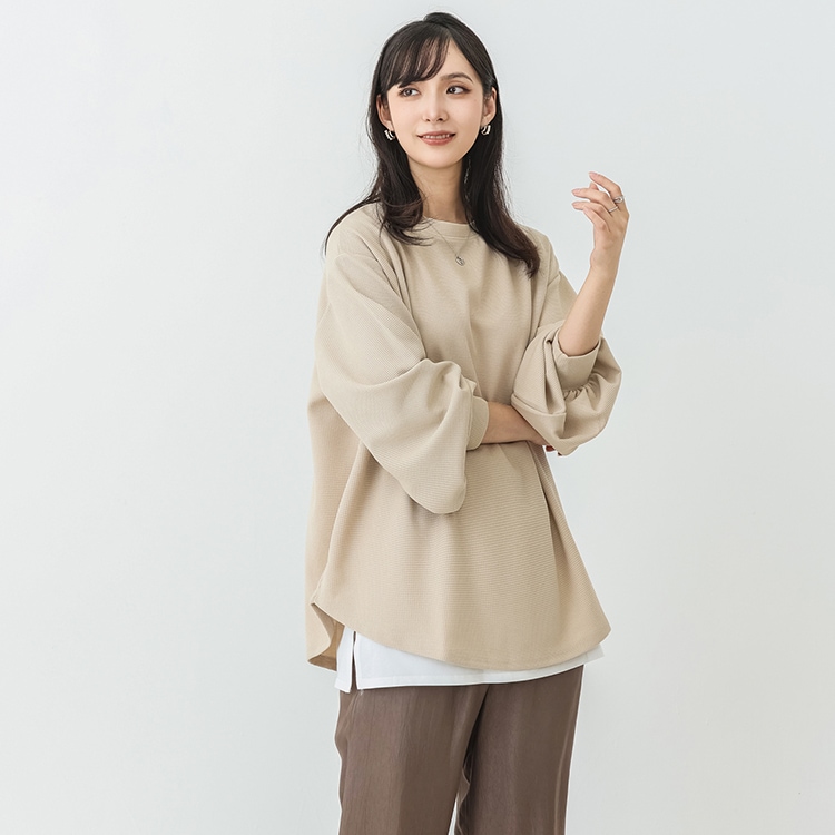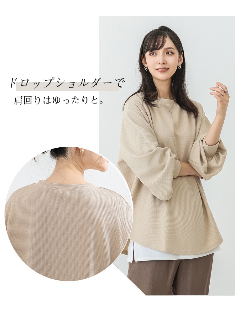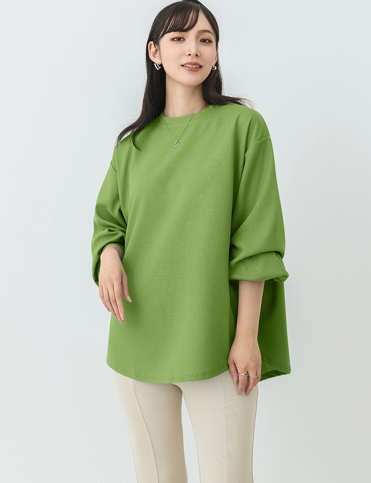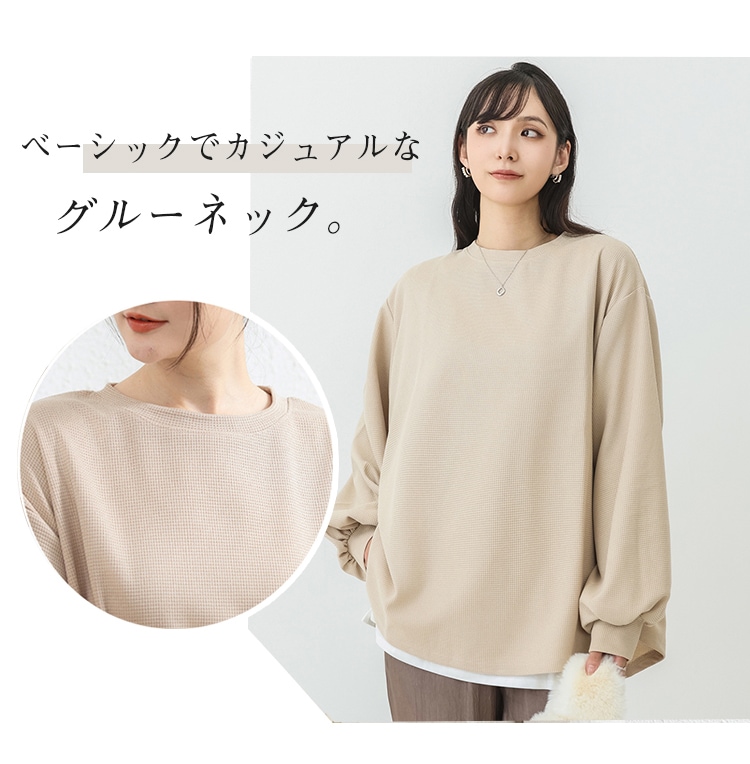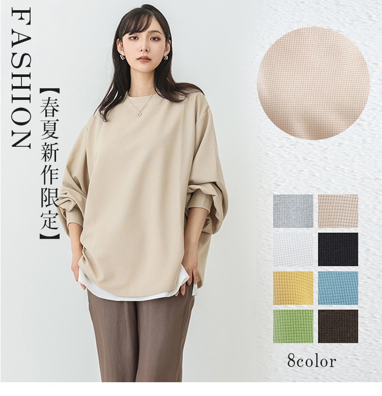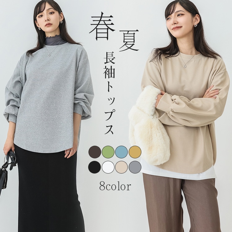 春新作入荷 スウェット レディース ワッフル生地 長袖 ボリューム トップス トレーナー おしゃれ 丸首 春秋 薄手 スウェット無地 トップス ロンT 体型カバー シンプル リラックス ゆったり