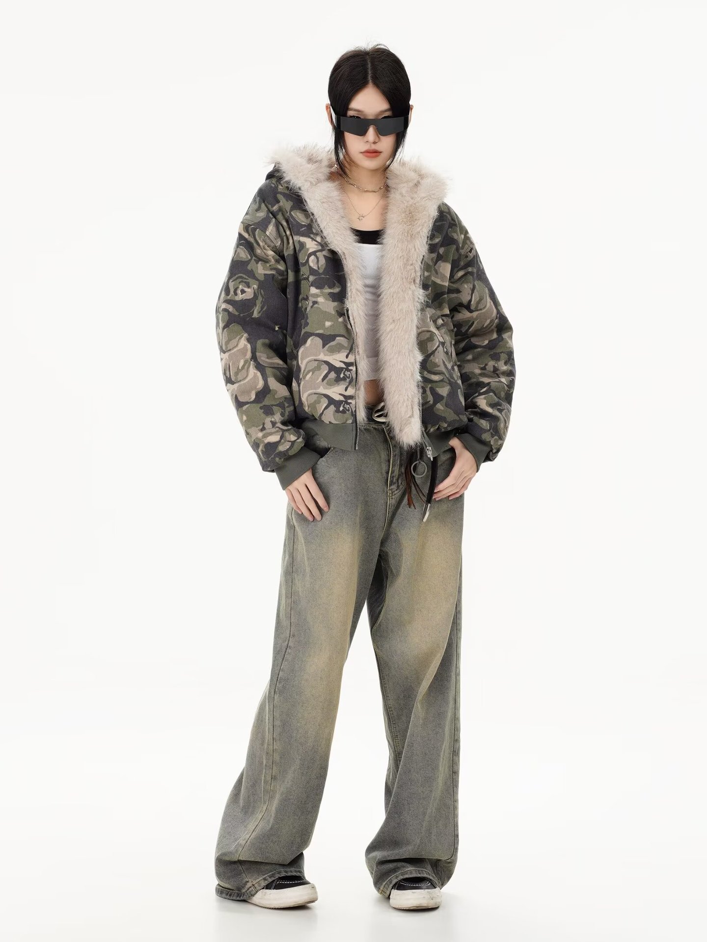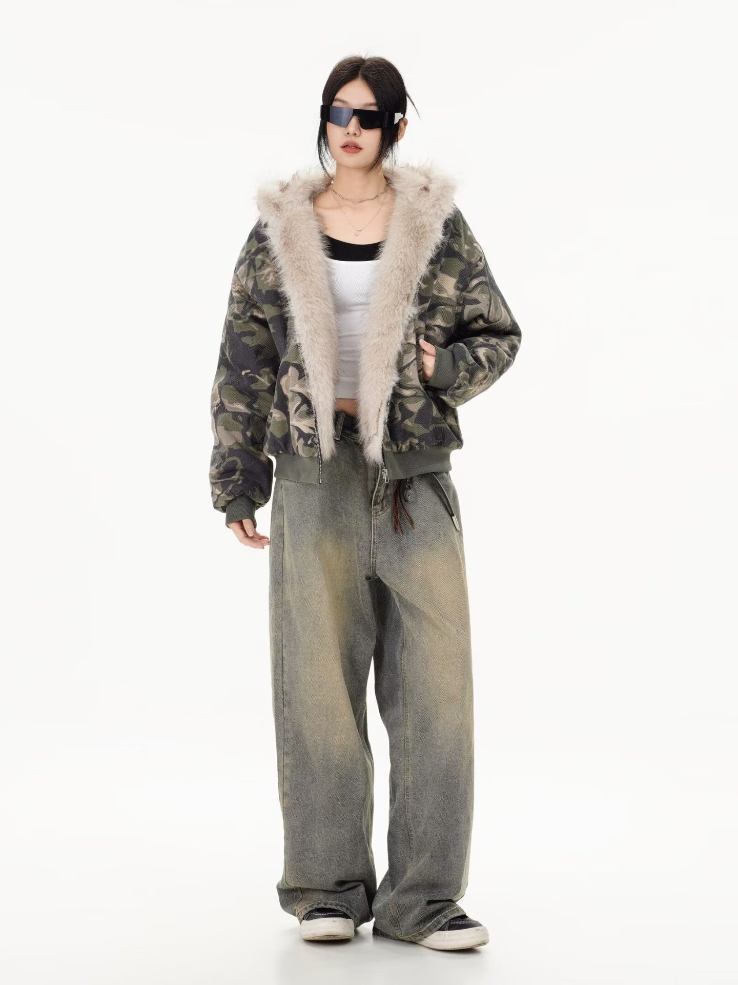 デニムパンツ ビジュー付き