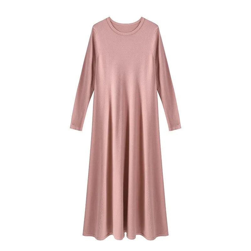 2025新入荷 韓国ファッション ワンピース 柔らかい お肌に優しい ロングワンピース さらさら 垂れ感 無地 気質 長袖 ニットワンピース ラウンドネック 大きいサイズ レディースファッション