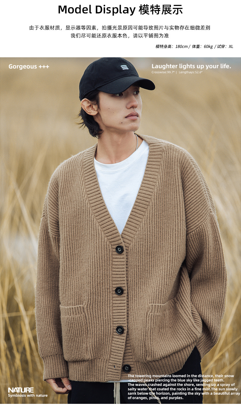 ニットカーディガンニットカーディガンジャケットメンズ2024秋と冬の新しい緩い日本のカップルジャンパーニットウェア ニット セーター