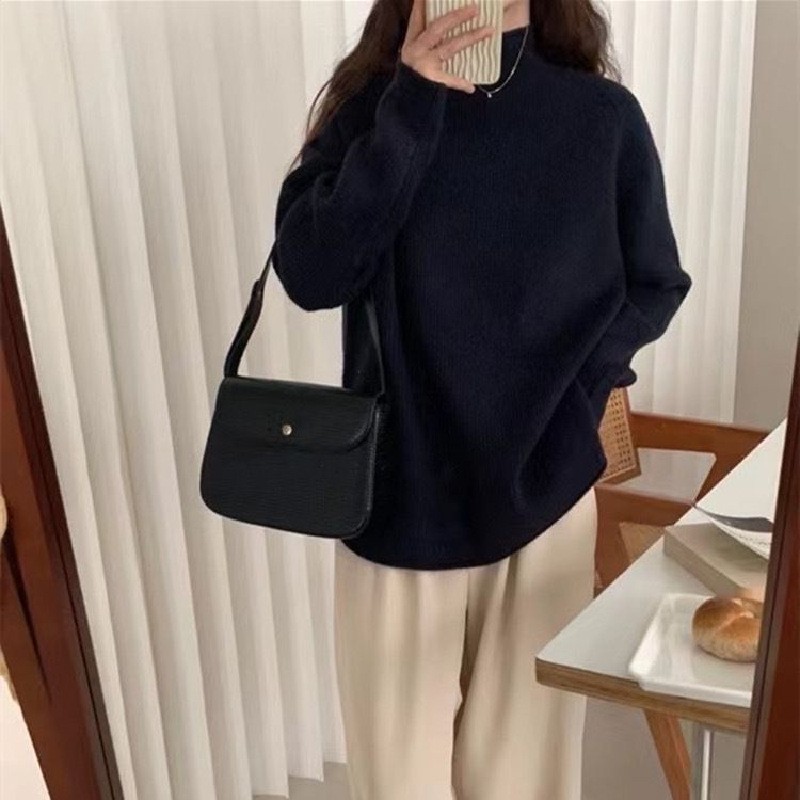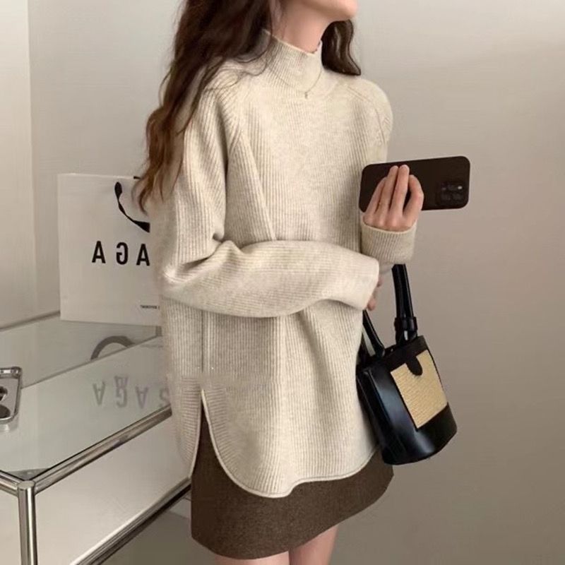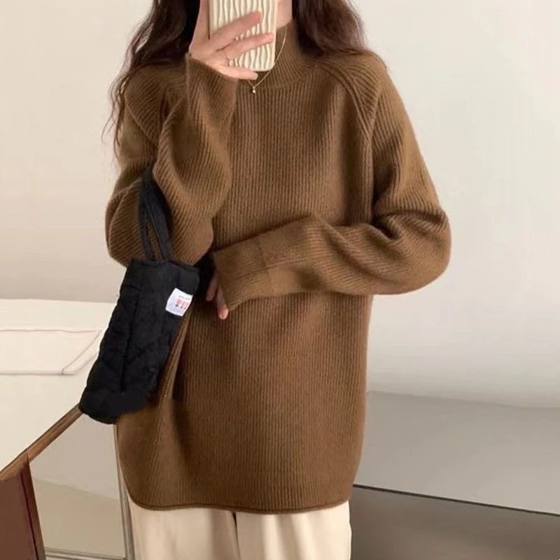 人気なリブニット秋冬 ハーフネックセーター レディース 快適百掛け ニットトップス 無地 シンプル ゆったり ニットセーター 体型カバーベーシックニット