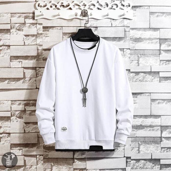 大人気 トレーナー レイヤード風Tシャツ 重ね着風 メンズ トップス 切り替え スウェット オシャレ プルオーバー 長袖 クルーネック 春服 秋服 新作