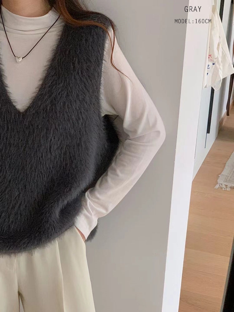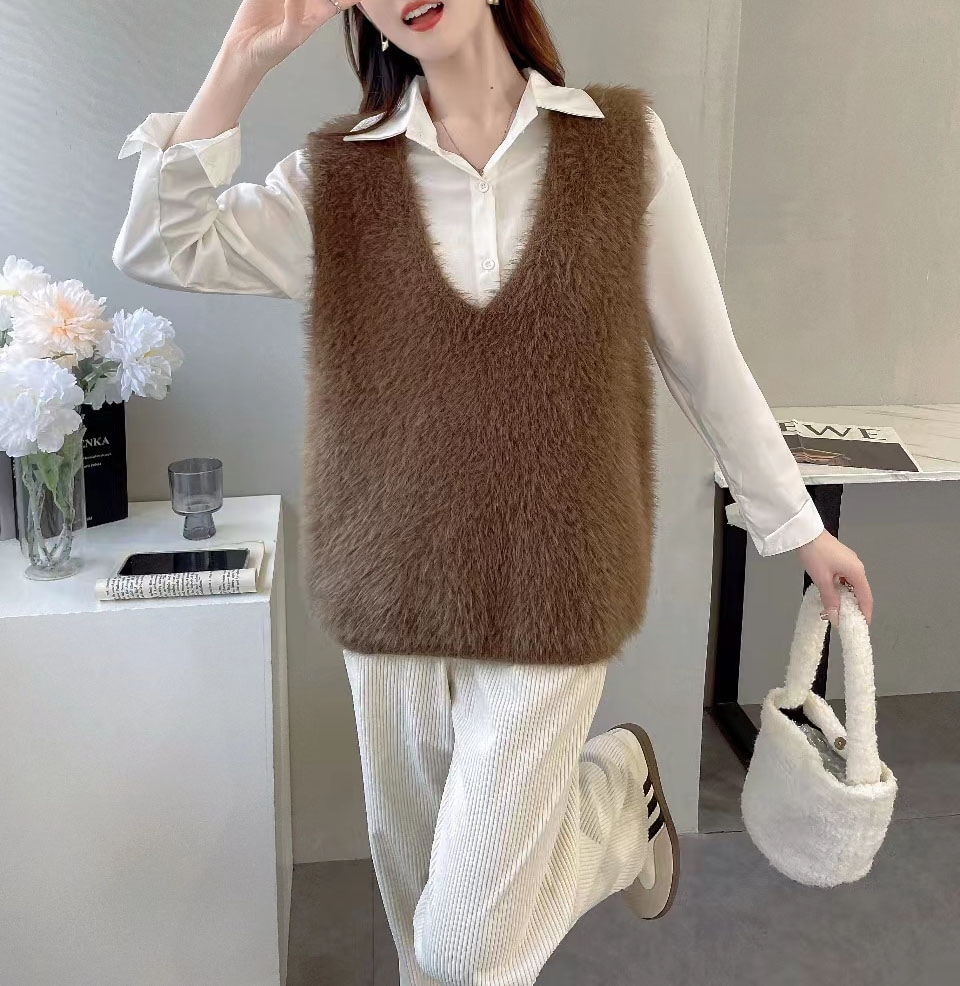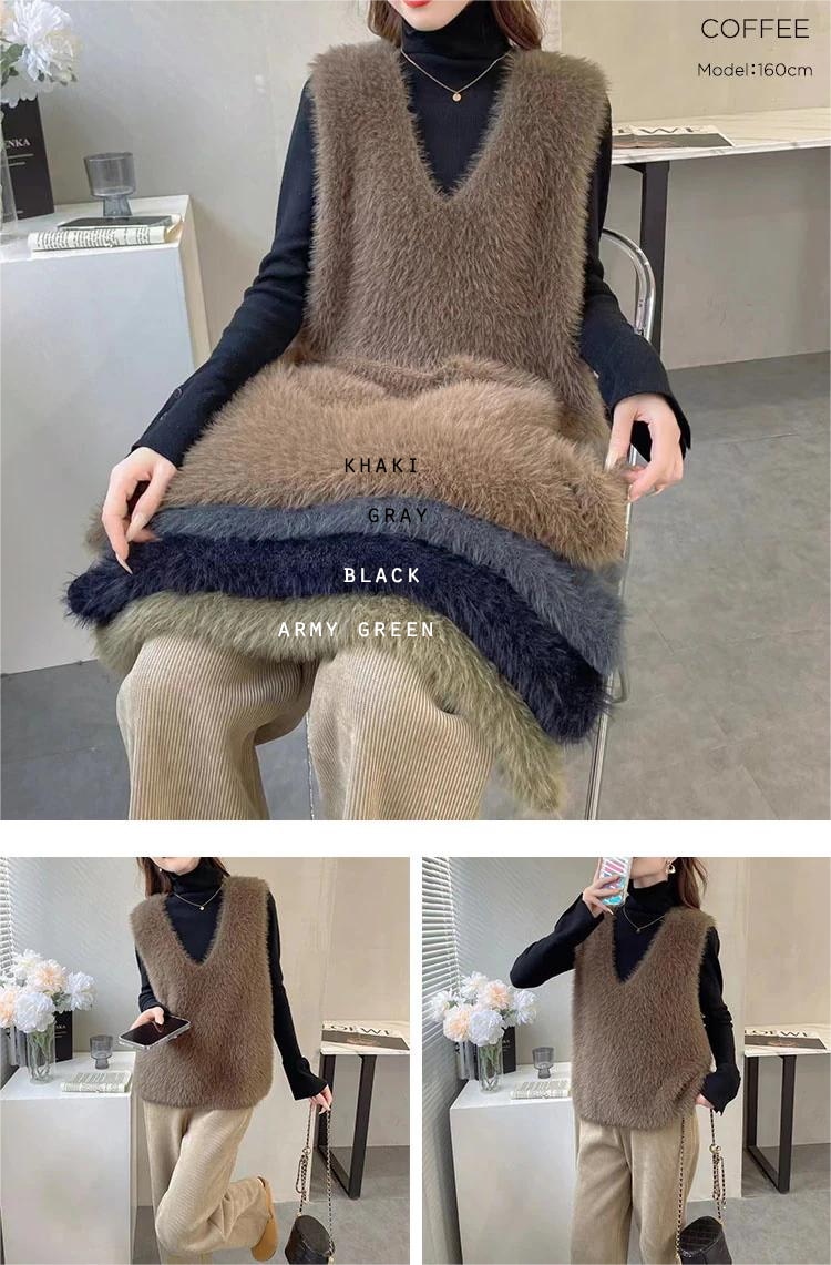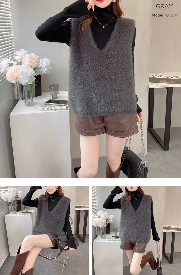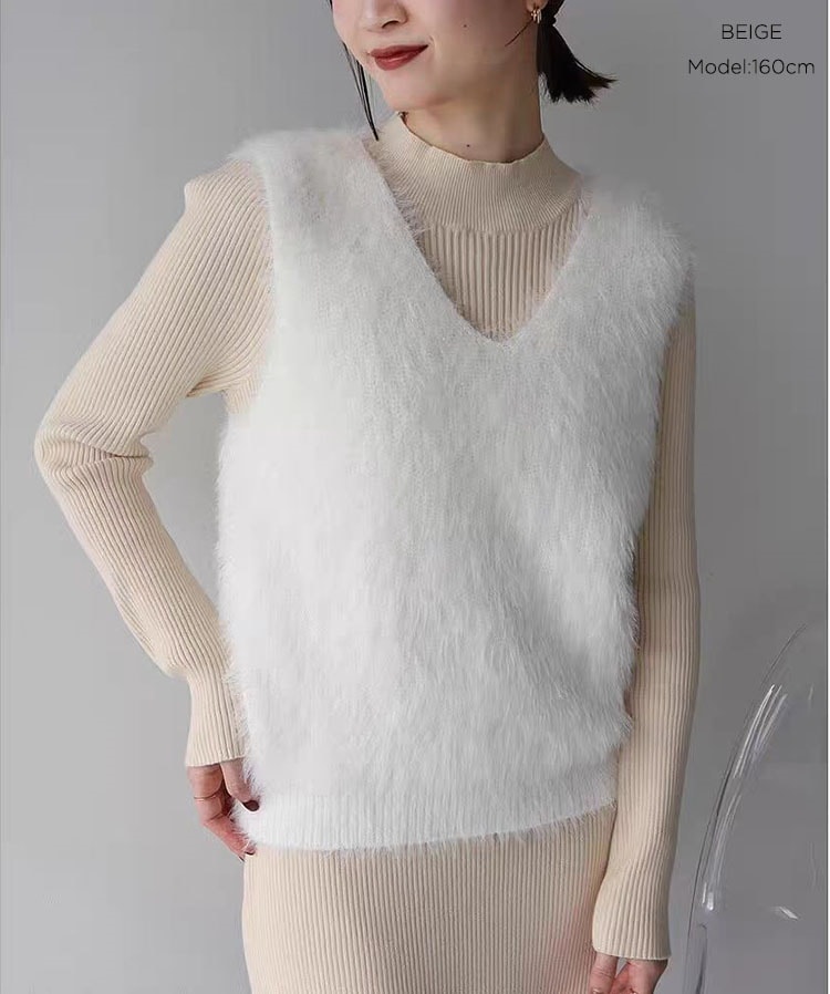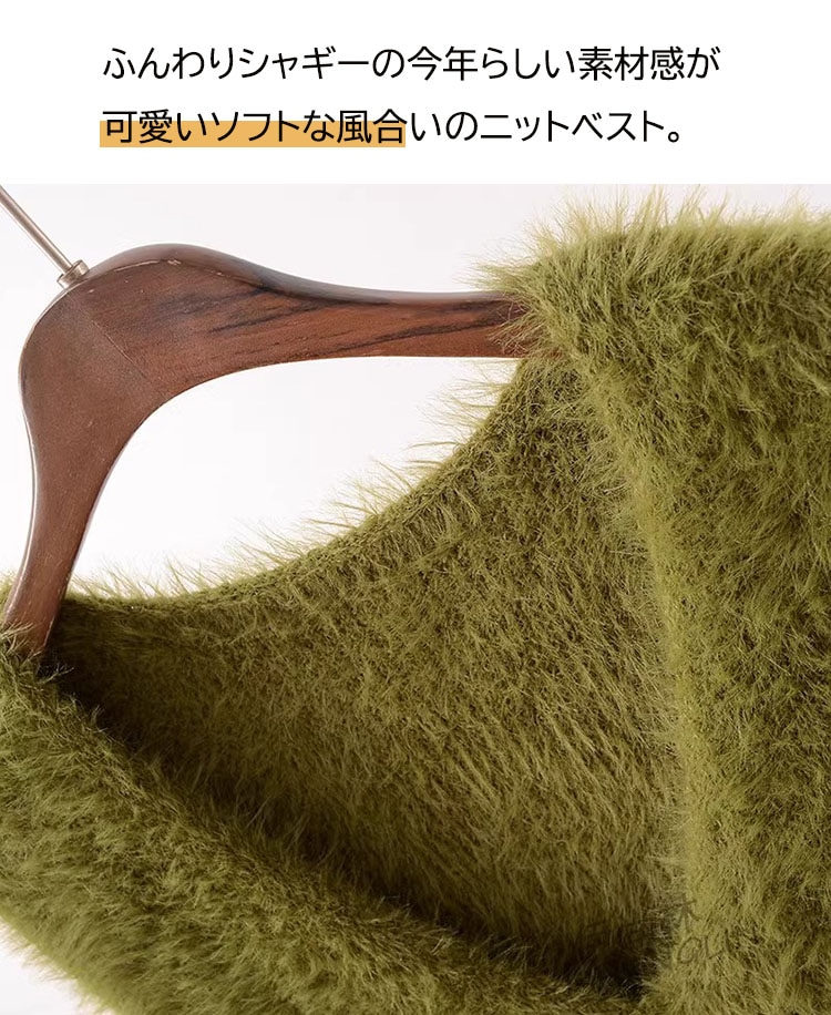 の新作シャギーニット モヘア ベスト トップス レディース シャギーベスト レイヤード Vネック 長毛 シャギー S-XL トレンド ニット