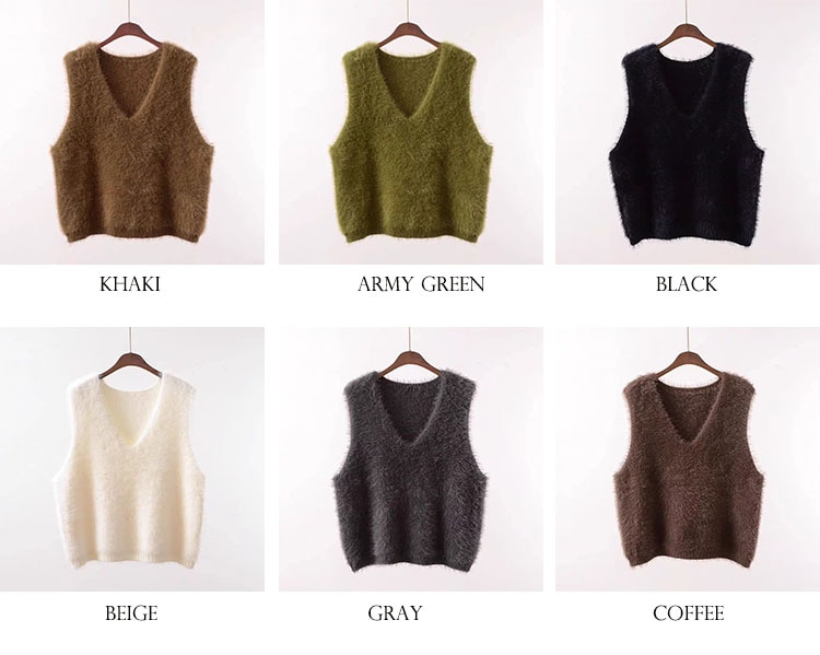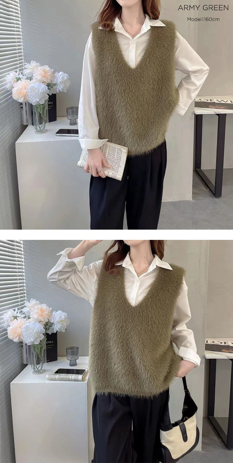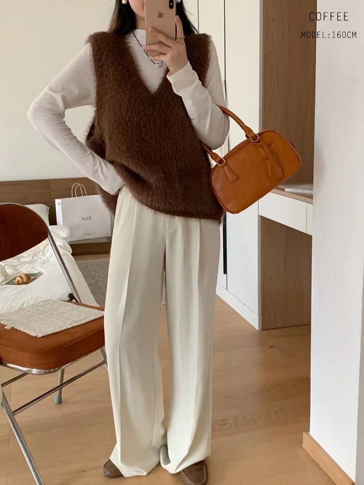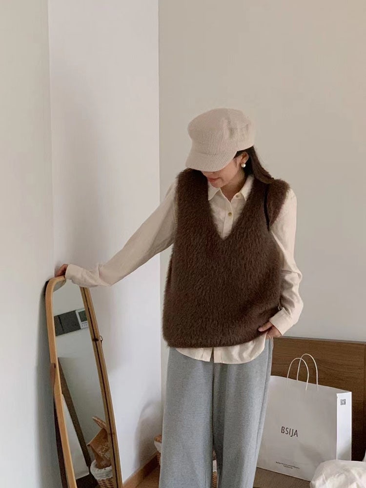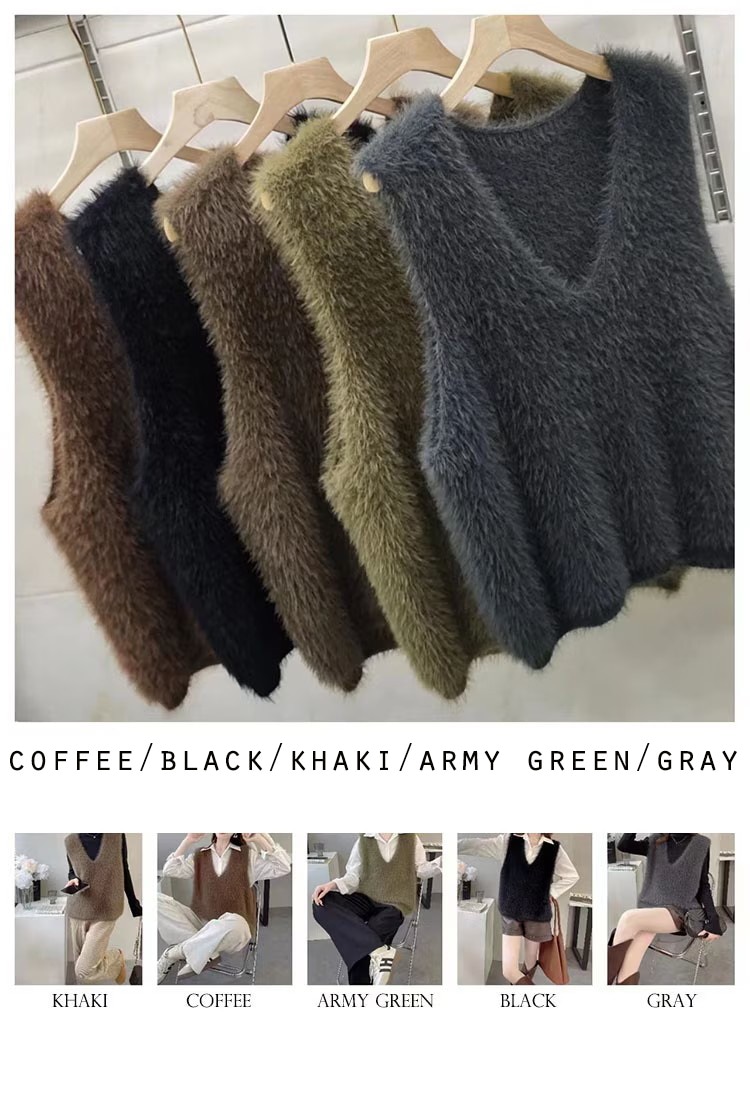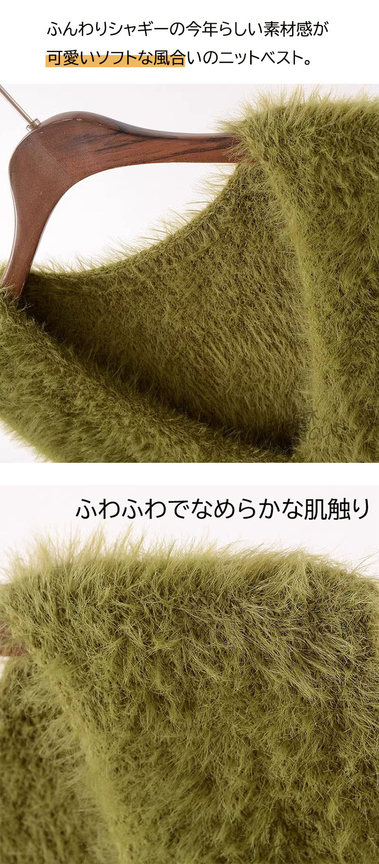 の新作シャギーニット モヘア ベスト トップス レディース シャギーベスト レイヤード Vネック 長毛 シャギー S-XL トレンド ニット