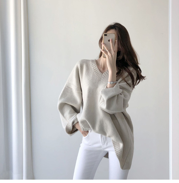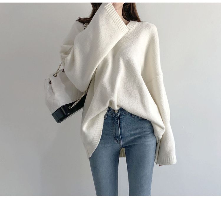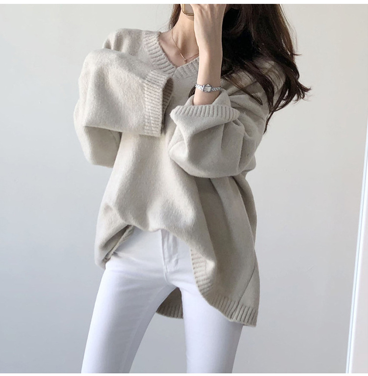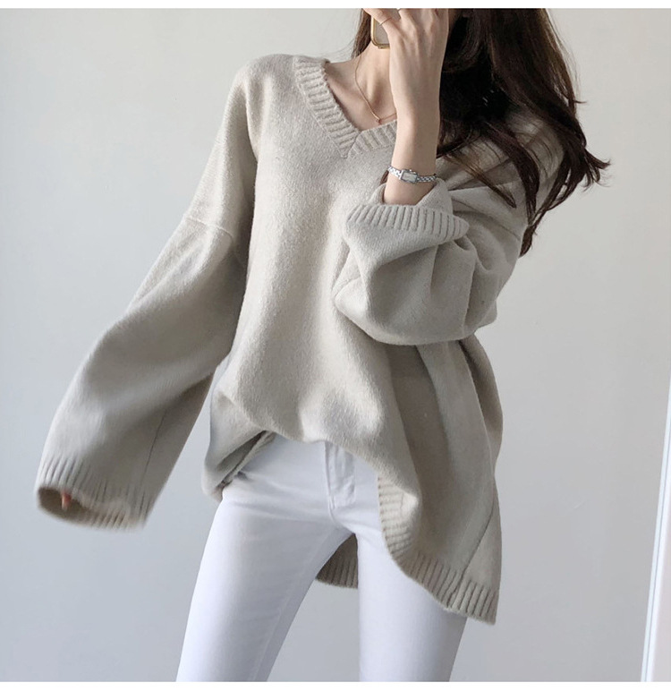 ニットセーター ニットトップス レディース ニット セーター カットソー トップス 秋冬 長袖 無地 Vネック プルオーバー ゆったり 体型カバー 大人 女性 可愛い