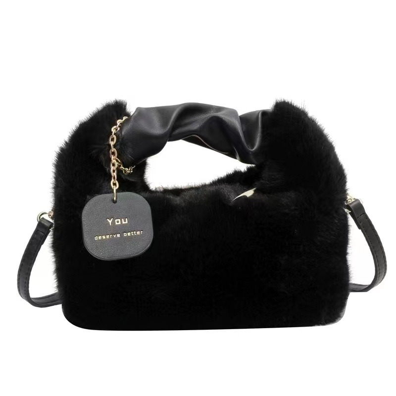 新韓国トートバッグ高級感あるモフモフの新作トートバッグニッチにも秋冬にもお洒落なクロスショルダーバッグ女性のモフモフさ ハンドバッグ