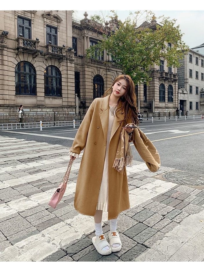 韓国ファッション 秋冬ロングコートラシャアウターレディース ジャケットトップス厚手体型カバー トレンチコートセミロング丈気質 通勤 ゆったり大きいサイズ 怠惰な風 チェスターコート