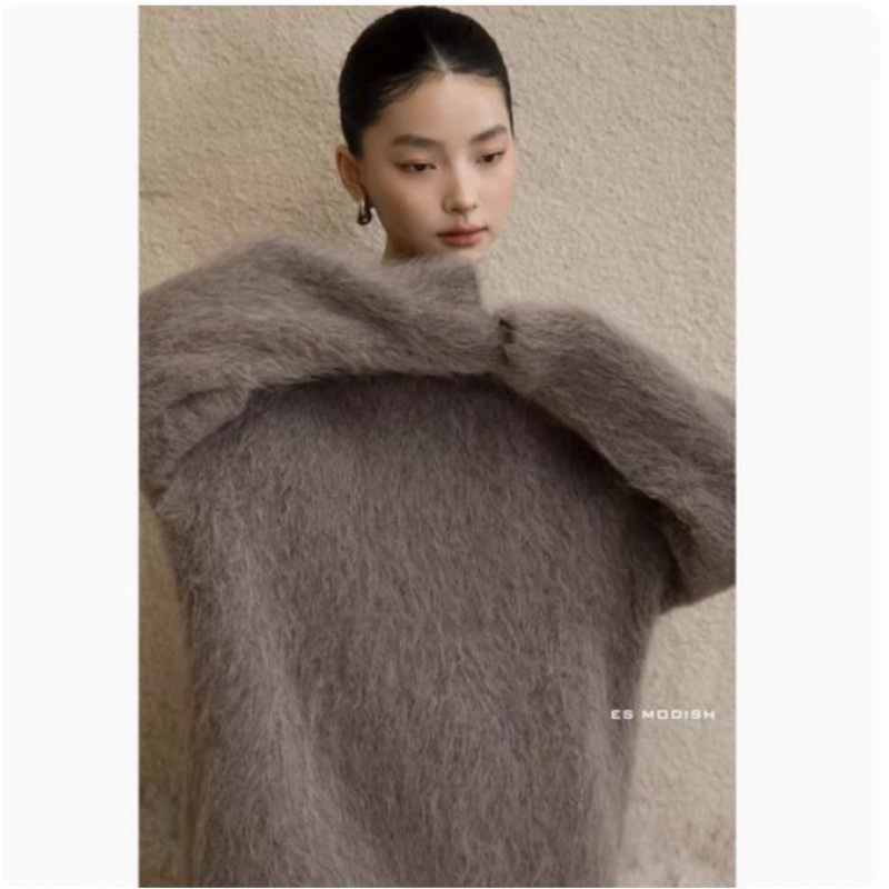 極.暖 高品.質保温 無地 長袖トップス ニット セーター レディース 冬 長袖 ラウンドネック モヘア シャギー オーバーサイズ ゆったり ドロップショルダー