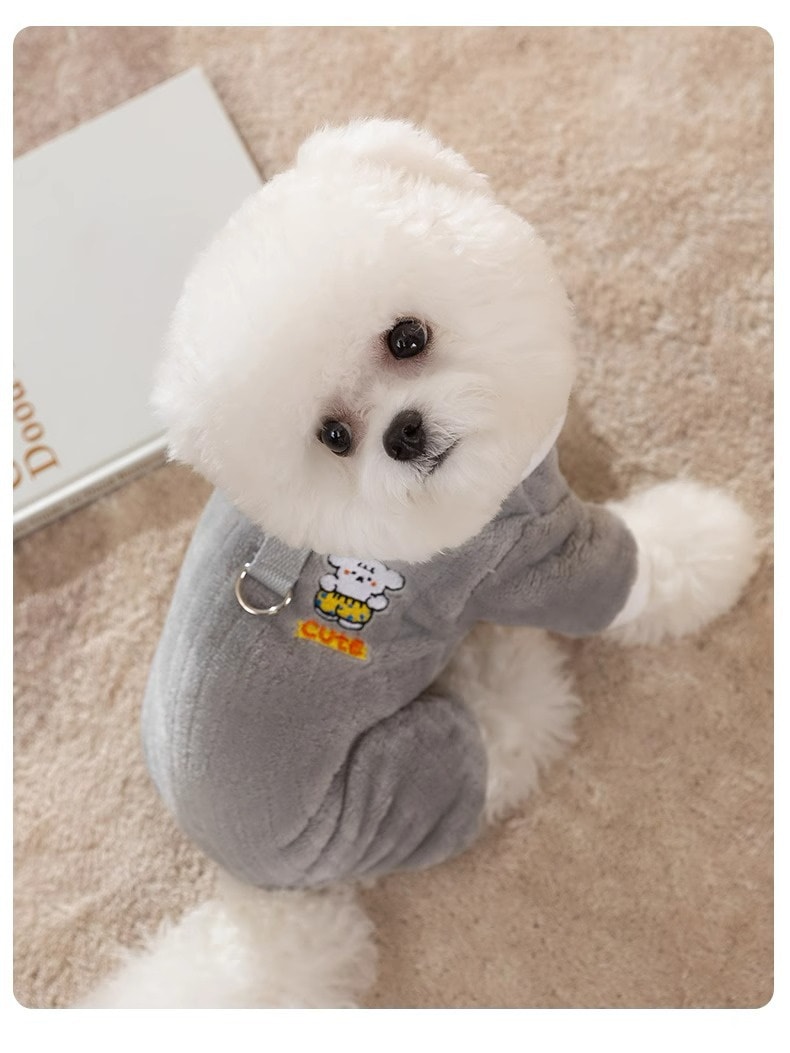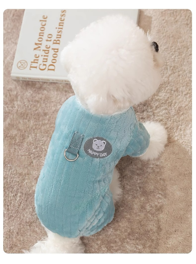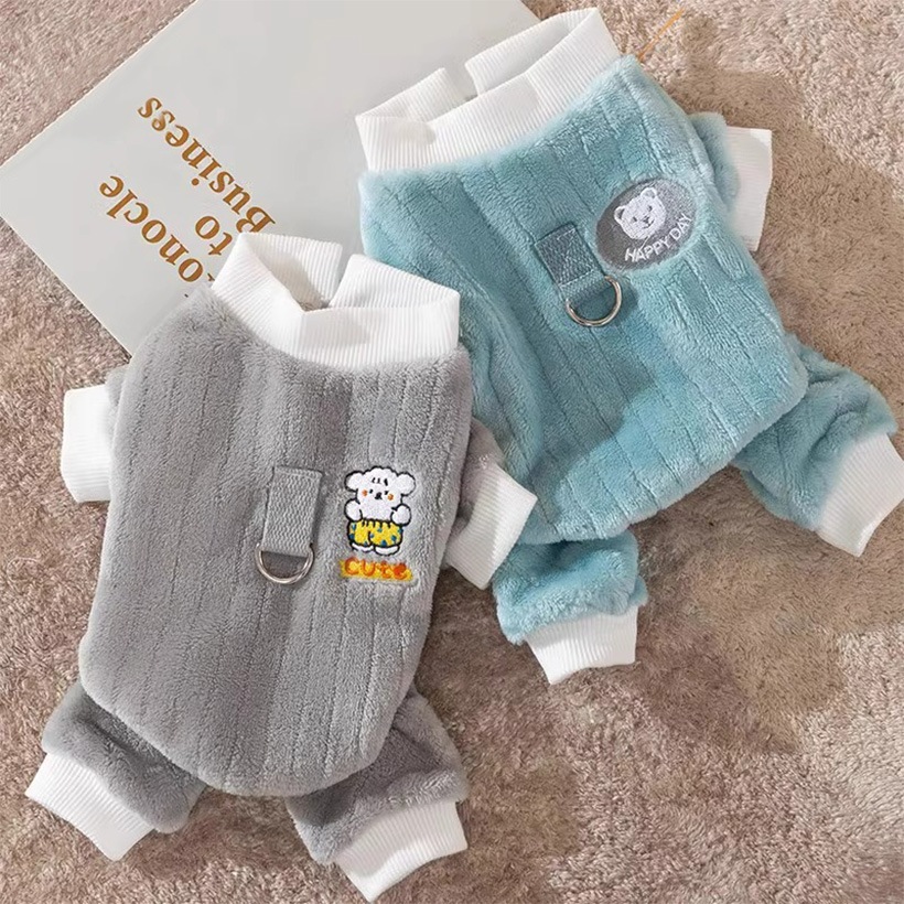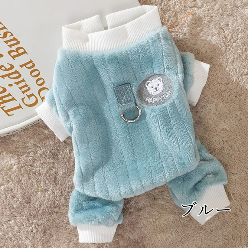 B4U フリース ペット服 小型犬 猫 ハーネス付き 冬 防寒 ペット用品 猫用品 犬用品 モコモコ 可愛い刺繍 熊 犬 防寒着