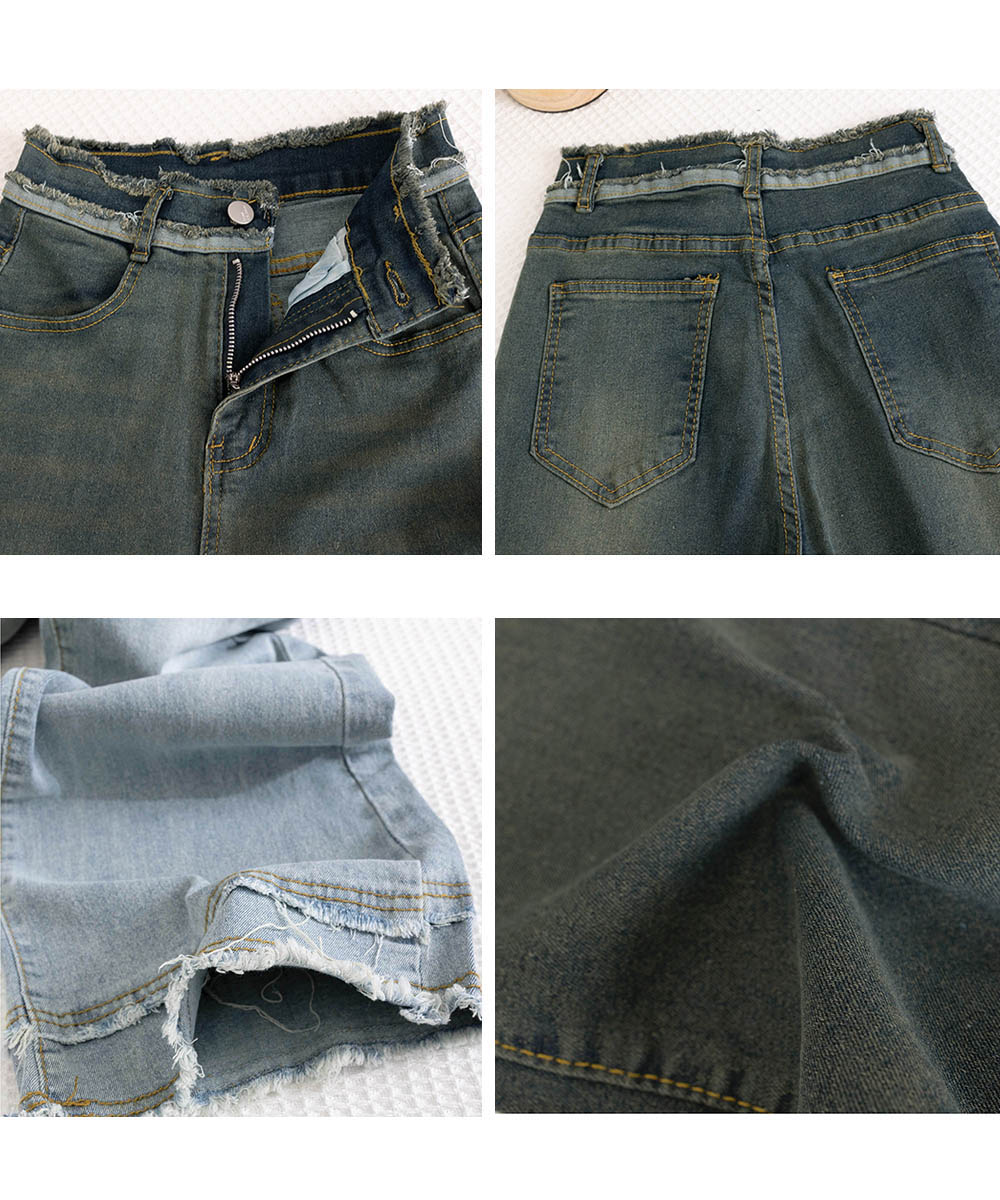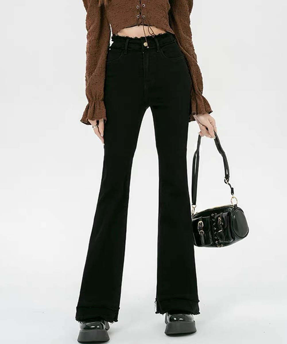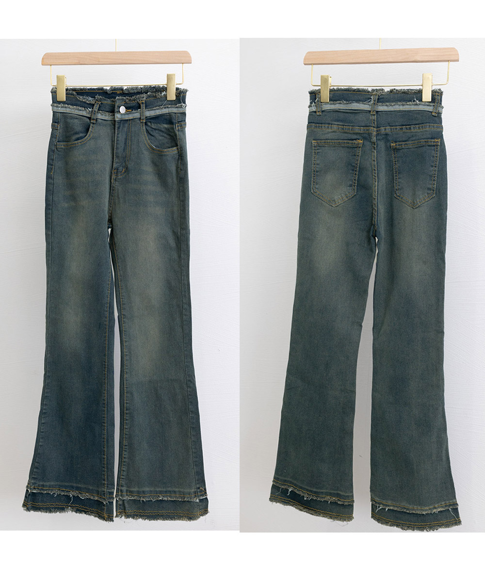 脚長効果 デニムパンツ フリンジ フレアパンツ ファッション デニム ジーンズ