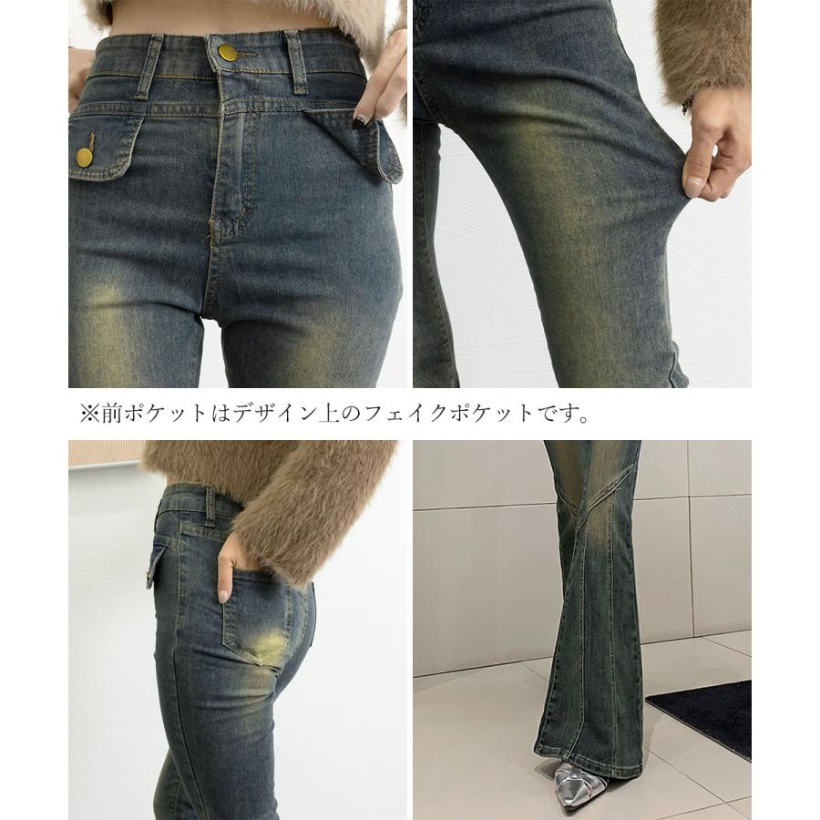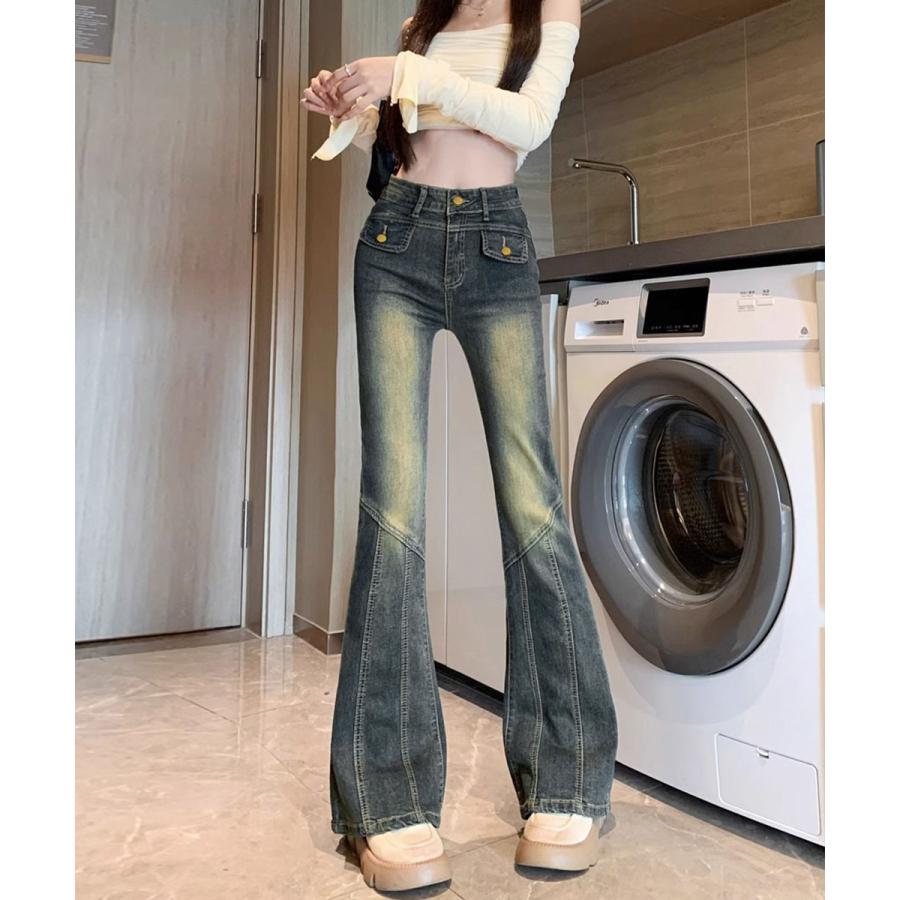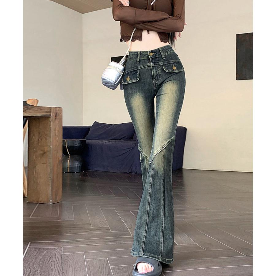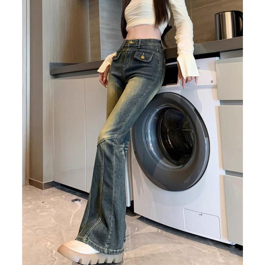 脚長効果 デニムパンツ レトロ セミフレアレディース ファッション デニム ジーンズ