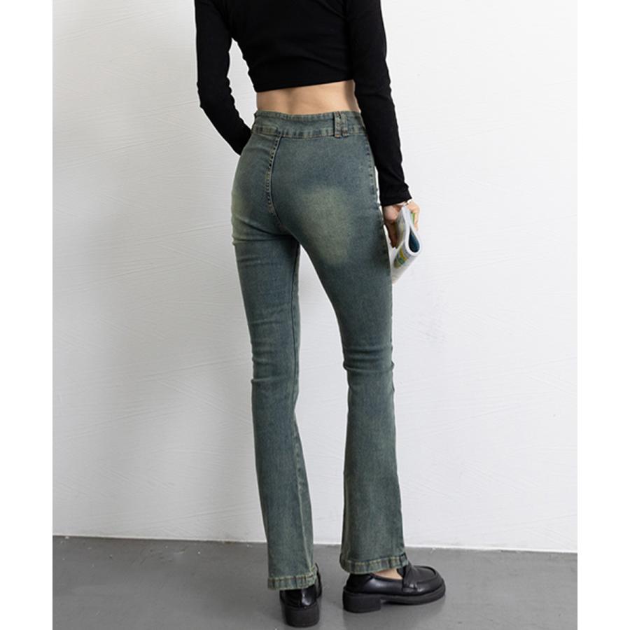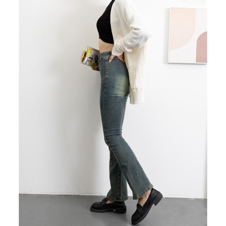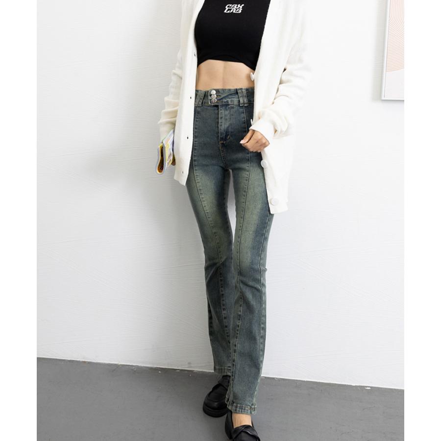 脚長効果 デニムパンツ レトロ セミフレアレディース ファッション デニム ジーンズ
