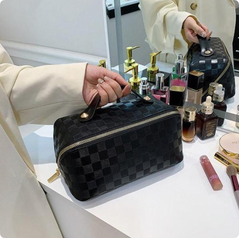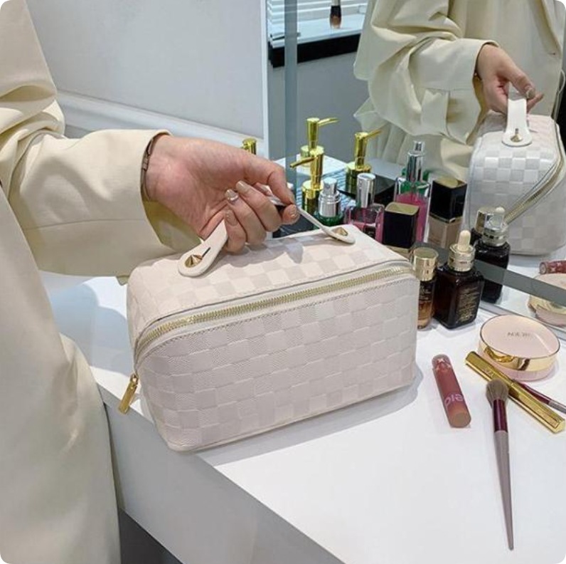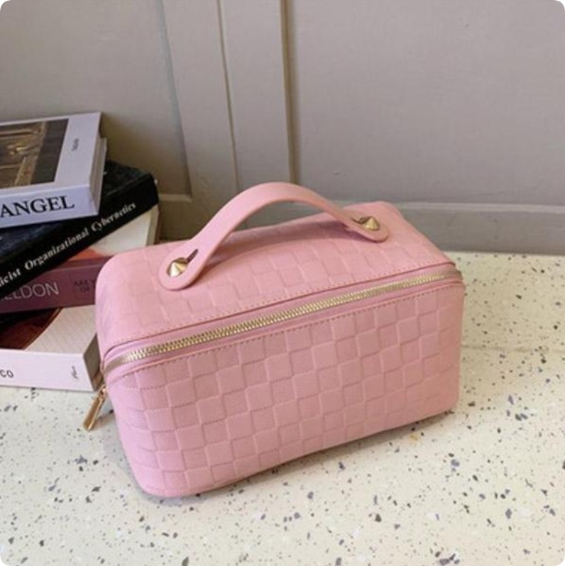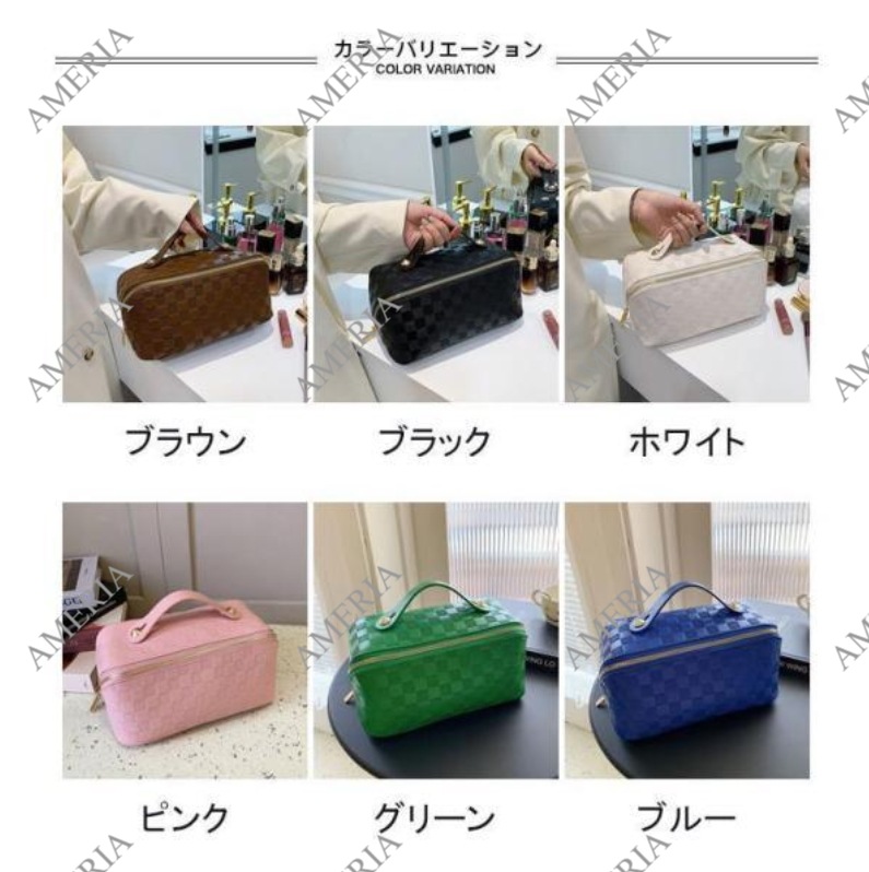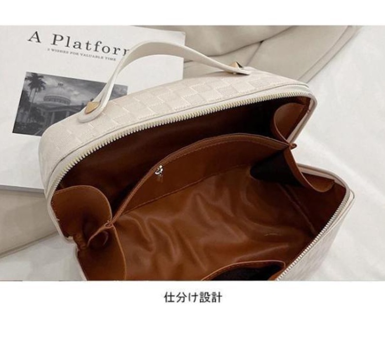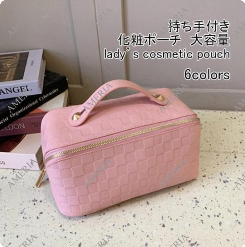 化粧ポーチ レディース 収納ポーチ 無地 持ち手付き コンパクト 合皮 自立 仕分け 大容量 機能的 防水 柔らかい 小物入れ シンプル ポーチ