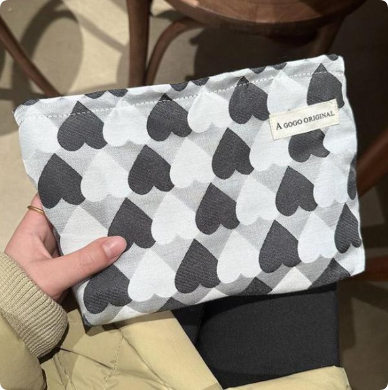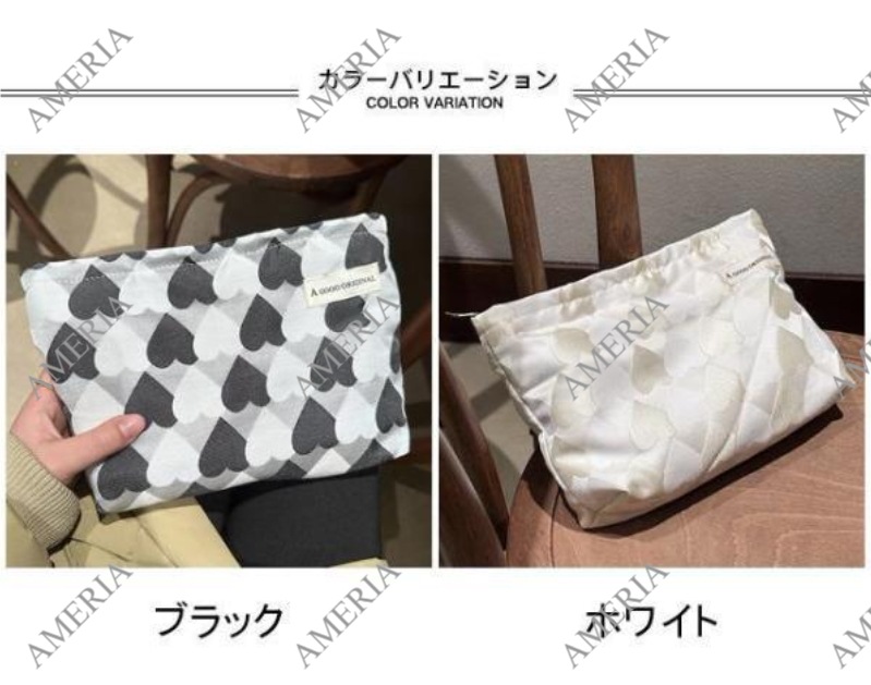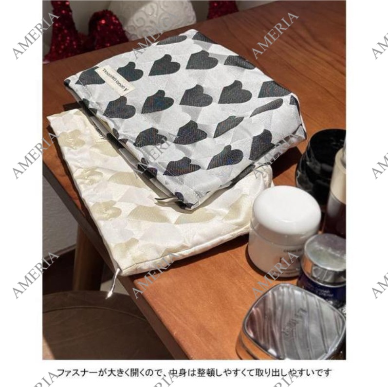 化粧ポーチ レディース 収納ポーチ 配色 ハート柄 ファスナー付き コンパクト 大きめ 大容量 使いやすい 持ち運び 小物入れ 便利グッズ ポーチ