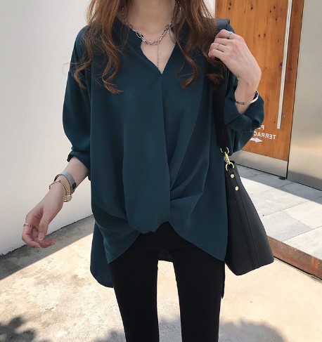 シフォンシャツ シルクシャツ長袖ルーズ Vネックトップスボトム シャツ シースルーシャツ ブラウス シャツ レディース 長袖ブラウス 韓国ファッション