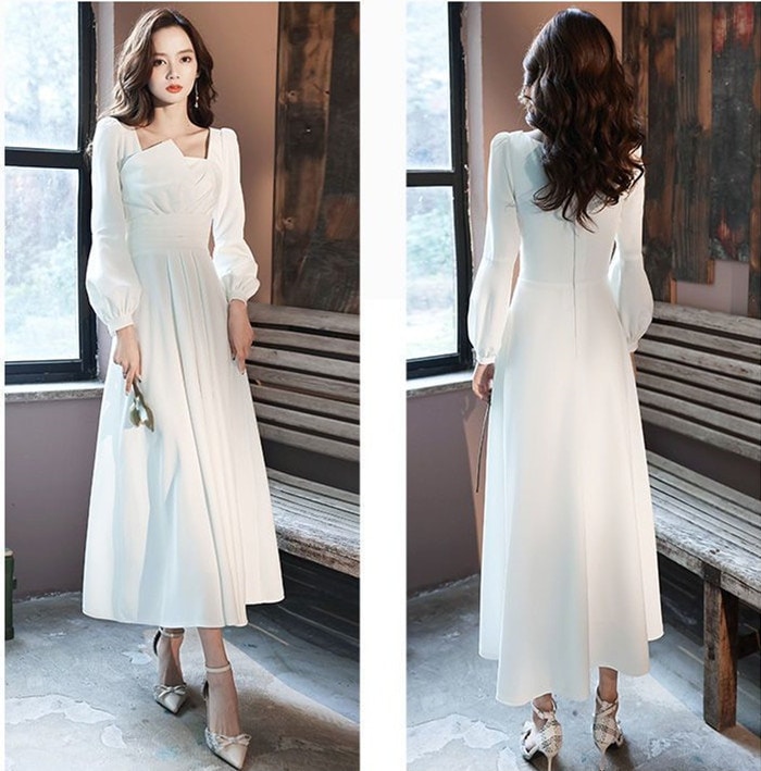 レディース ファッション エレガント快適です 気質 ホワイト ドレス 新しい 宴会 主宰 ハイエンド ワンピース ドレス