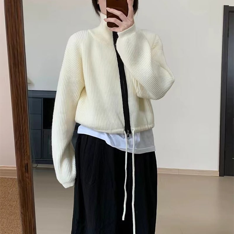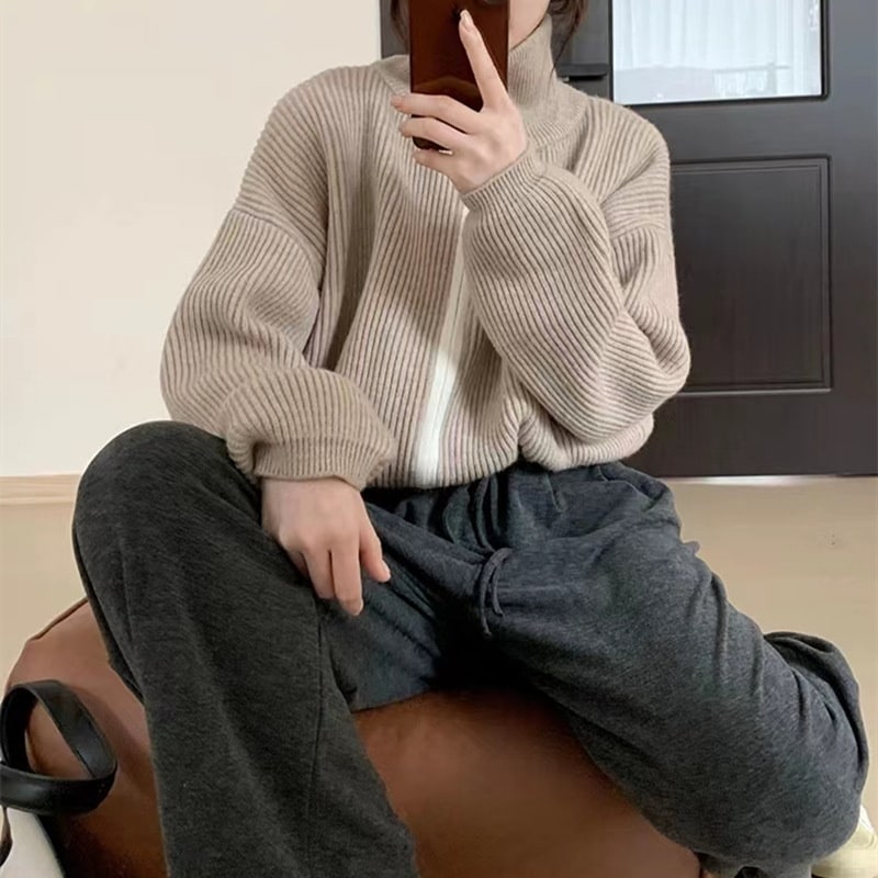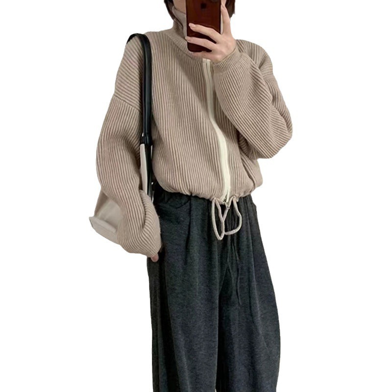 ニットカーディガン 厚手 レディース 春秋ゆったり ボリューム袖 アウター トップス 前開き もこもこ暖かふわふわ 体型カバー フェミニン 無地 ゆったり 柔らか 韓国ファッション セーター