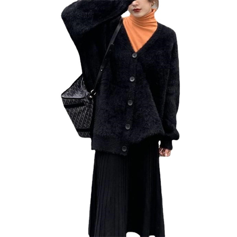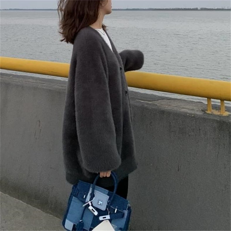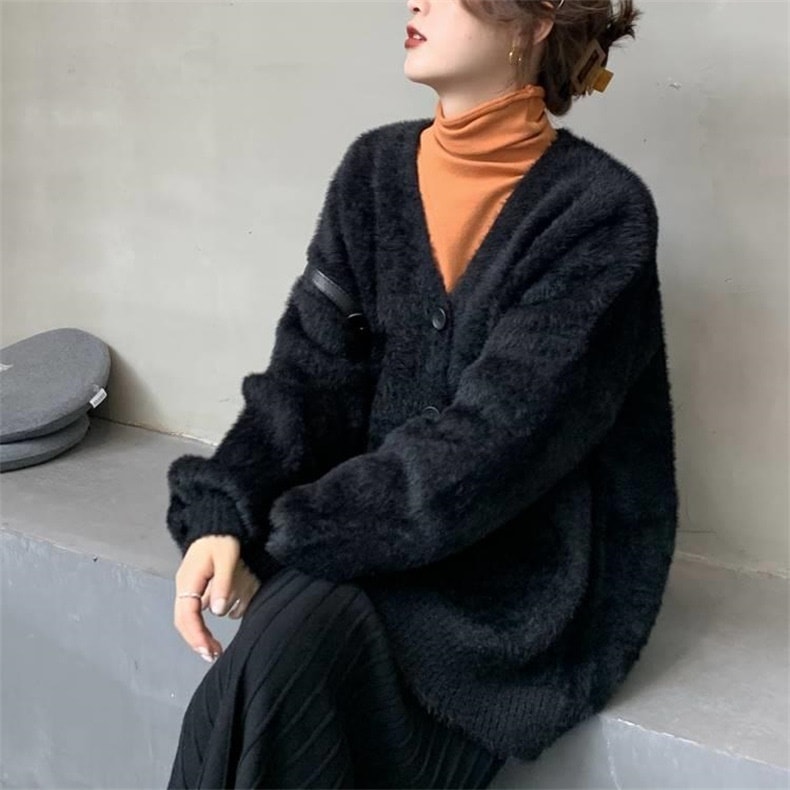 ニットカーディガン 厚手 レディース 春秋ゆったり ボリューム袖 アウター トップス 前開き もこもこ暖かふわふわ 体型カバー フェミニン 無地 ゆったり 柔らか 韓国ファッション セーター