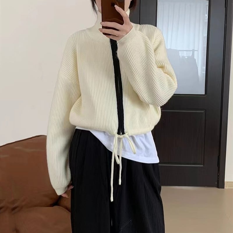 ニットカーディガン 厚手 レディース 春秋ゆったり ボリューム袖 アウター トップス 前開き もこもこ暖かふわふわ 体型カバー フェミニン 無地 ゆったり 柔らか 韓国ファッション セーター