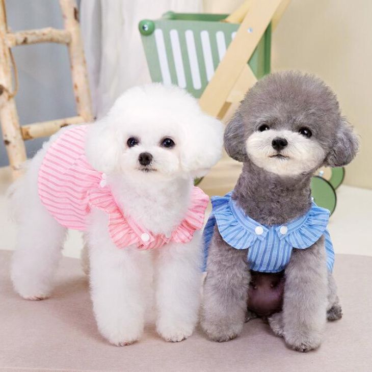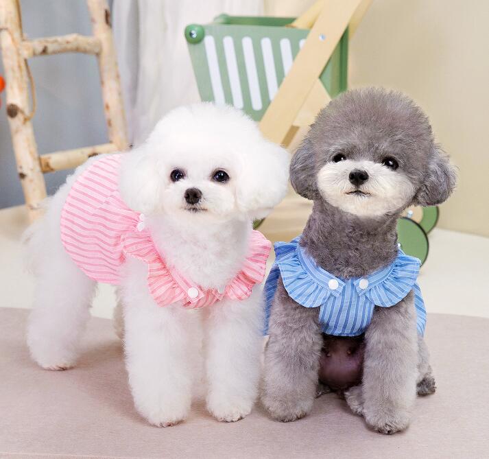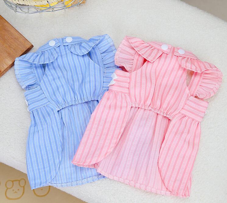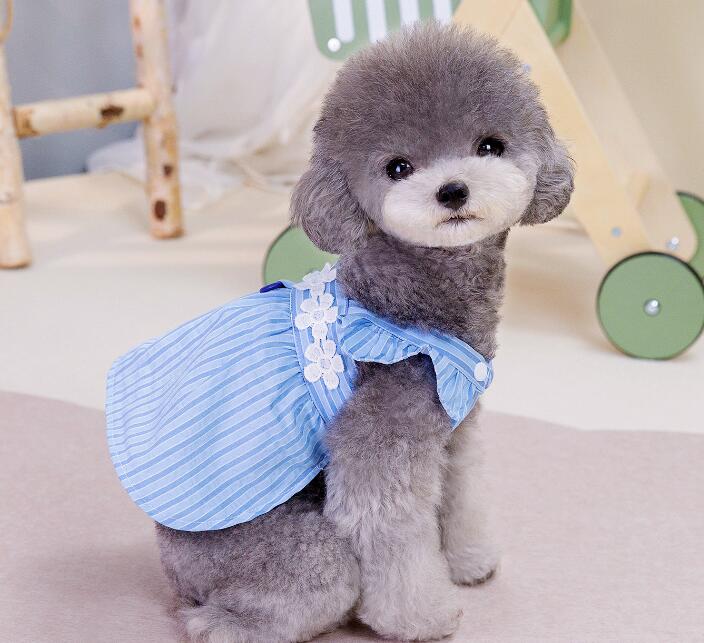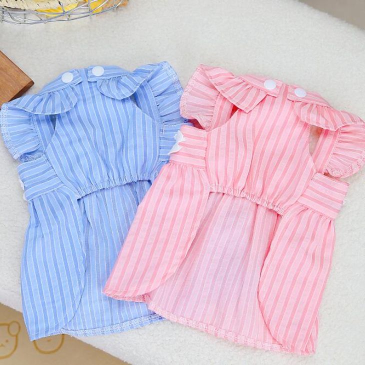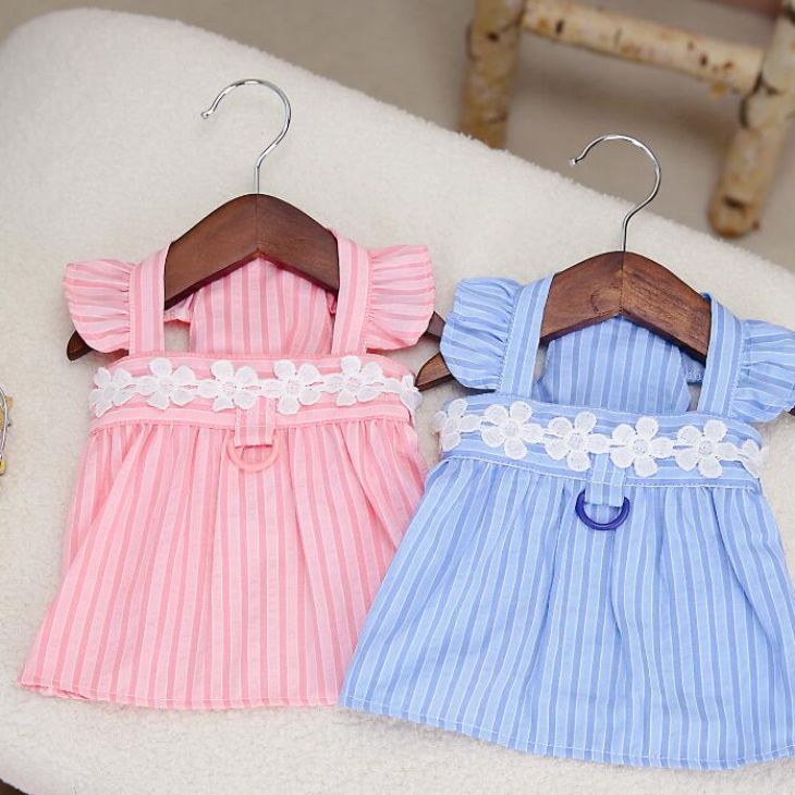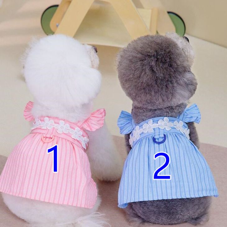 3日出荷新作 超 可愛い 冬服 犬服 小型犬服 ワンピース フラワー ストライプ スカート お揃いコーデ ワッペン カラフル Dカン ノースリーブ かわいい 春シャツ 春トップス 春ニット パ