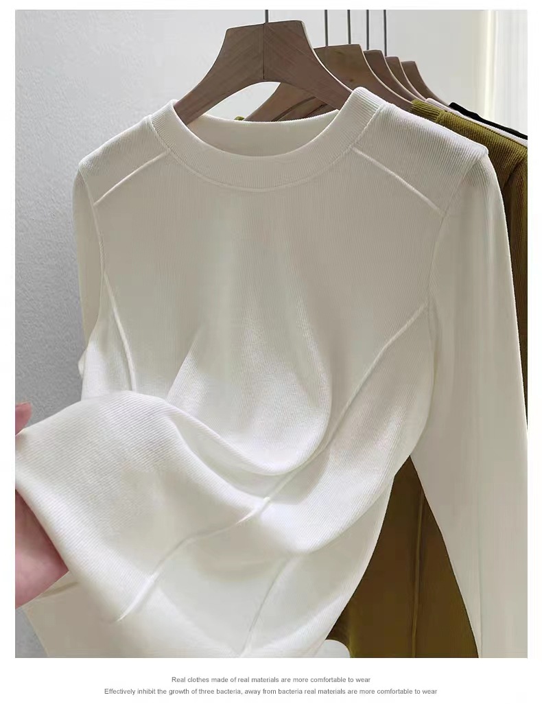 リブニット ラウンドネック 人気なリブニット 長袖tシャツ レディース 人気なリブニット インナーアンダーウェア 秋冬薄手 リブトップスシンプル