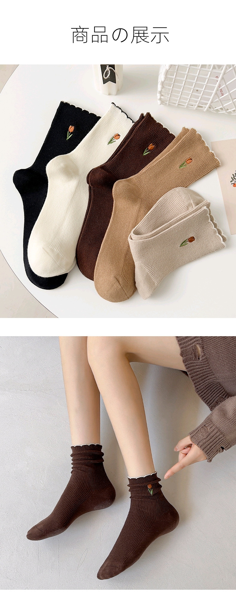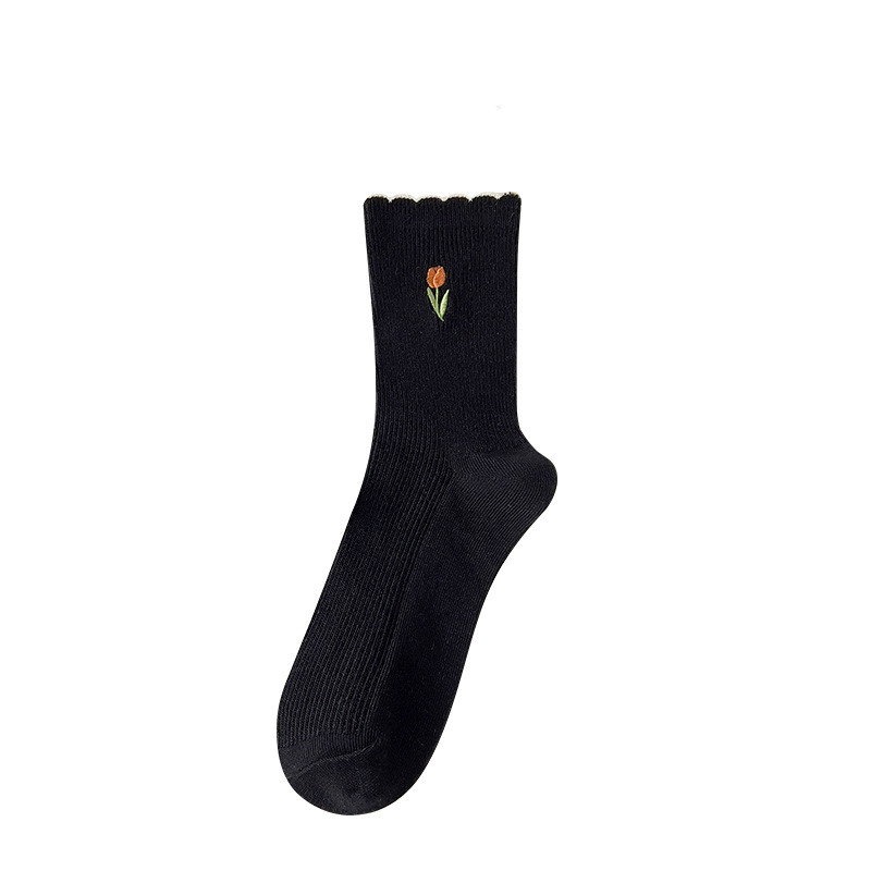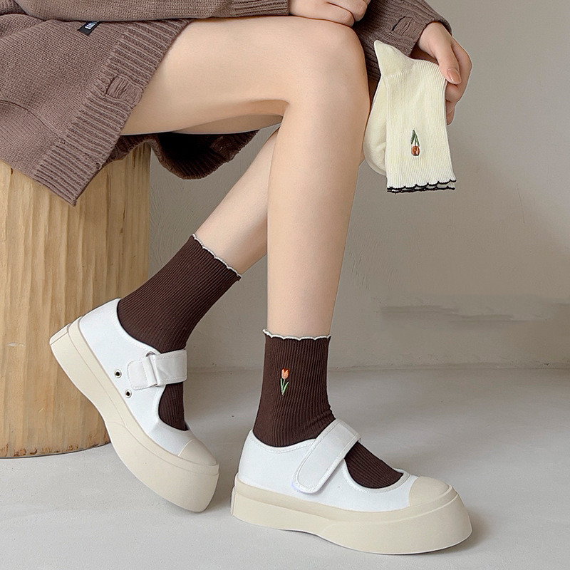 5足セット秋服 韓国 純綿 刺繍 ソックス フラワー レース本 百掛け 保温 快適 柔らかい 冬のレッグウエア キュート