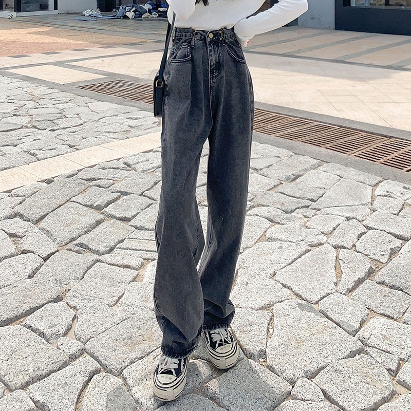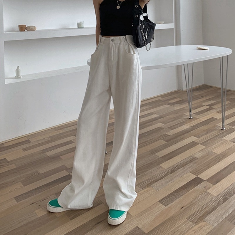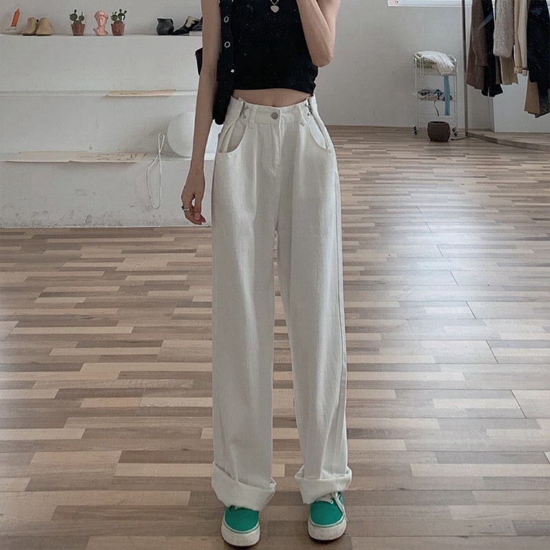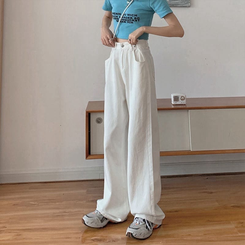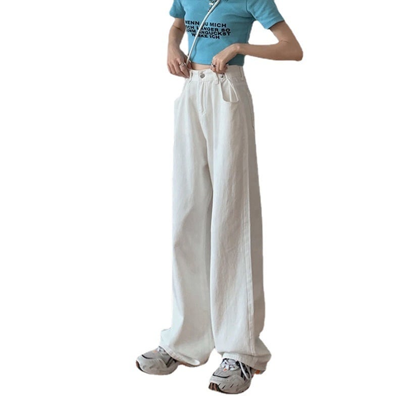 ホワイトジーンズレディースは痩せ春秋韓国ハイウエストワイドパンツモッピングパンツ デニム ジーンズ