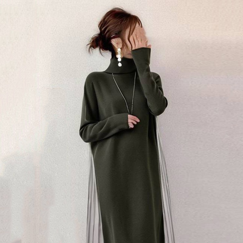2025初春 日系 タートルネック セミロング ワンピース 韓国 ワンピース ロングスカート レディースファッション メガ割商品